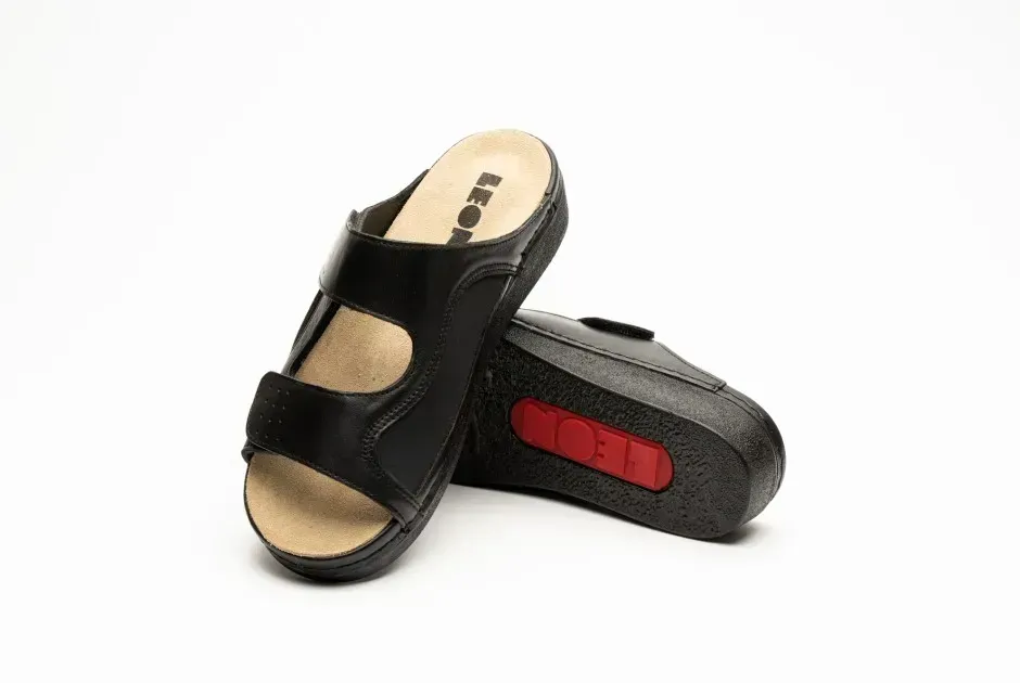 Жіночі шльопанці Leon Чорний 5010-38 ортопедія. Характеристики: Артикул: 5010 Чорний 38, Колір: Чорний, Матеріал верху: Натуральна шкіра, Вид підкладки: Масажний гель / меморі-піна, Матеріал підошви: поліуретан і протектор проти ковзання, Країна виробник: Сербія.