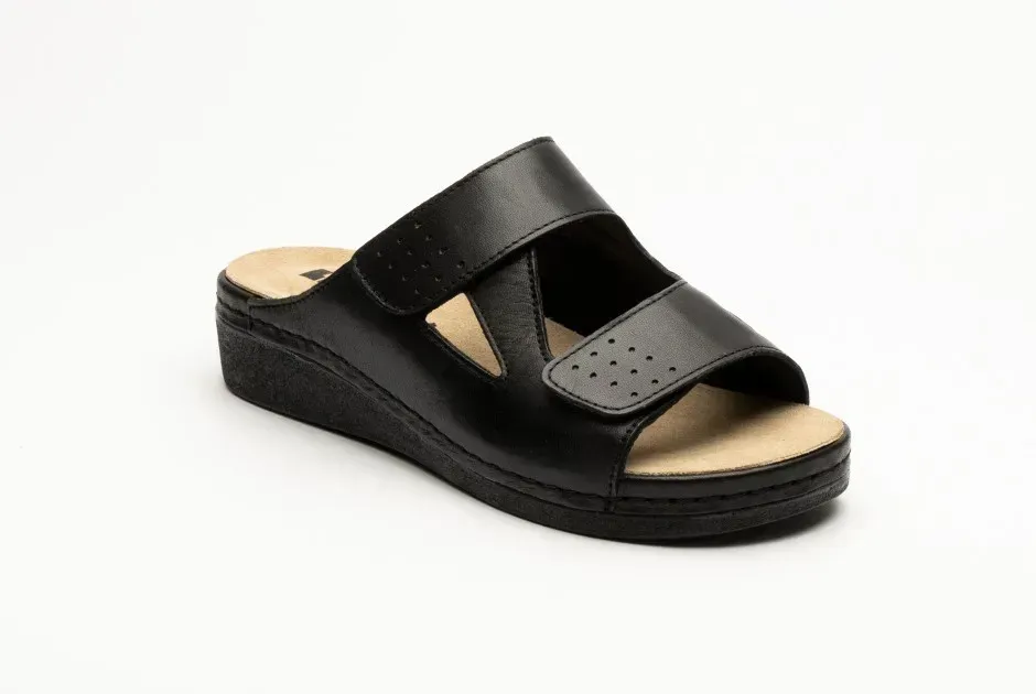 Жіночі шльопанці Leon Чорний 5010 ортопедія. Характеристики: Артикул: 5010 Чорний, Колір: Чорний, Матеріал верху: Натуральна шкіра, Вид підкладки: Масажний гель / меморі-піна, Матеріал підошви: поліуретан і протектор проти ковзання, Країна виробник: Сербія.