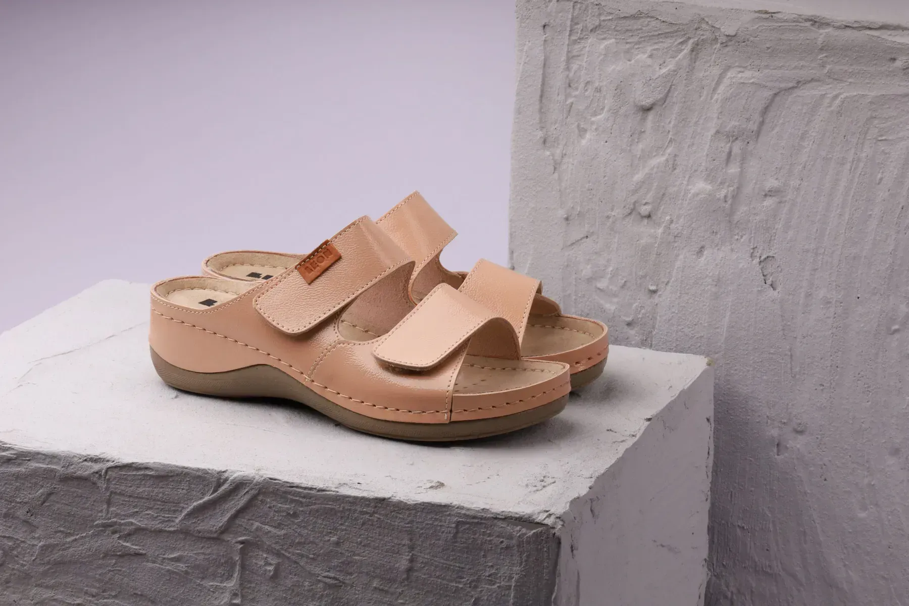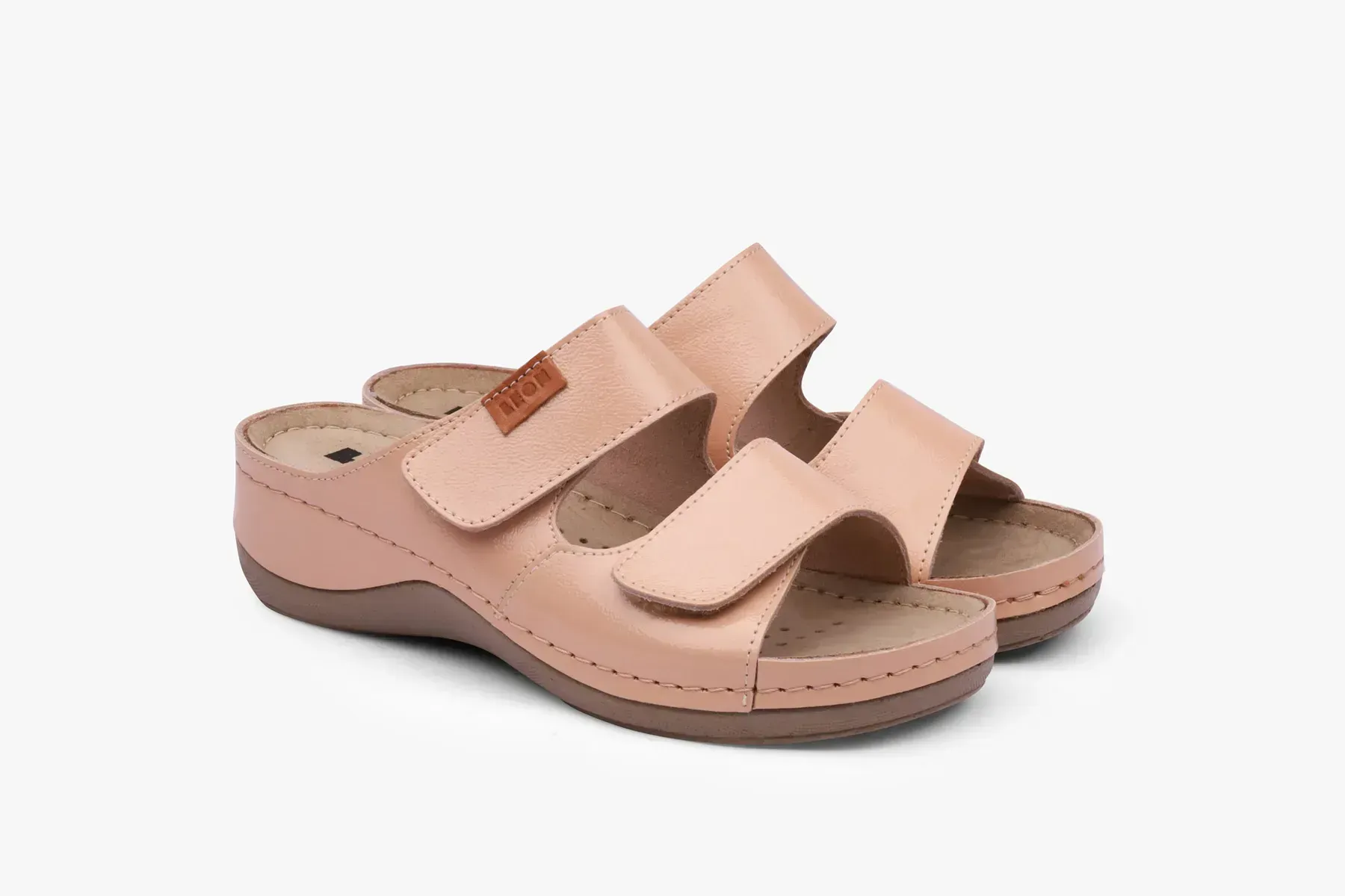 Жіночі шльопанці Leon Пудровий 931-лак-36 ортопедія. Характеристики: Артикул: 931 Пудровий лак 36, Колір: Пудровий, Матеріал верху: Натуральна шкіра, Вид підкладки: Масажний гель / меморі-піна, Матеріал підошви: Поліуретан, Країна виробник: Сербія.