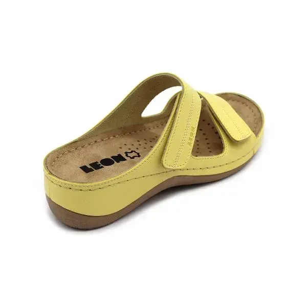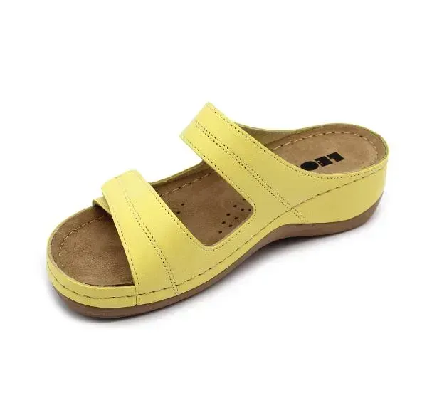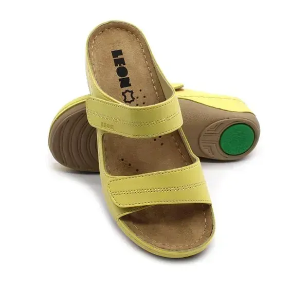 Жіночі шльопанці Leon Жовтий 907-Orlando-36 ортопедія. Характеристики: Артикул: 907 Жовтий Orlando 36, Колір: Жовтий, Матеріал верху: Натуральна шкіра, Вид підкладки: Масажний гель / меморі-піна, Матеріал підошви: Поліуретан, Країна виробник: Сербія.