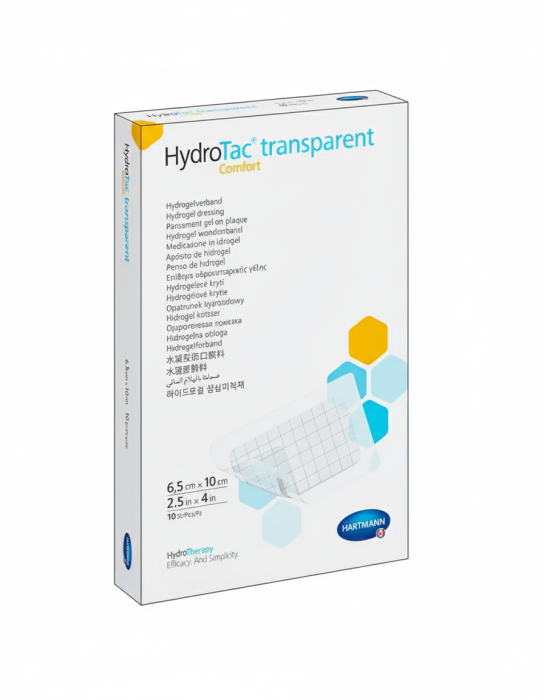 Прозора гідрогелева пов'язка, виготовлена із гідратованого поліуретану. Зворотня сторона пов'язки вкрита водо-, та паронепроникним захисним шаром, що попереджає проникнення вологи та мікроорганізмів в рану. Пов'язка зволожує рану та поглинає ексудат в невеликих кількостях - це забезпечує створення вологого середовища в рані, що стимулює процес загоєння. HydroTac® transparent - атравматична пов'язка, не приклеюється до рани. З внутрішньої сторони пов'язка HydroTac® transparent comfort додатково має самоклеючий кант на основі гіпоалергенного клею - тому не потребує додаткової фіксації.