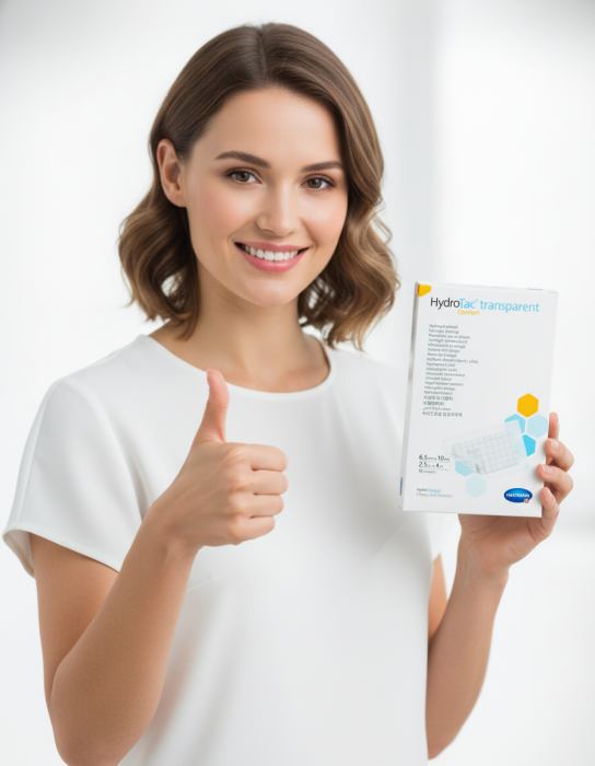 З внутрішньої сторони пов'язка HydroTac® transparent comfort додатково має самоклеючий кант на основі гіпоалергенного клею - тому не потребує додаткової фіксації.