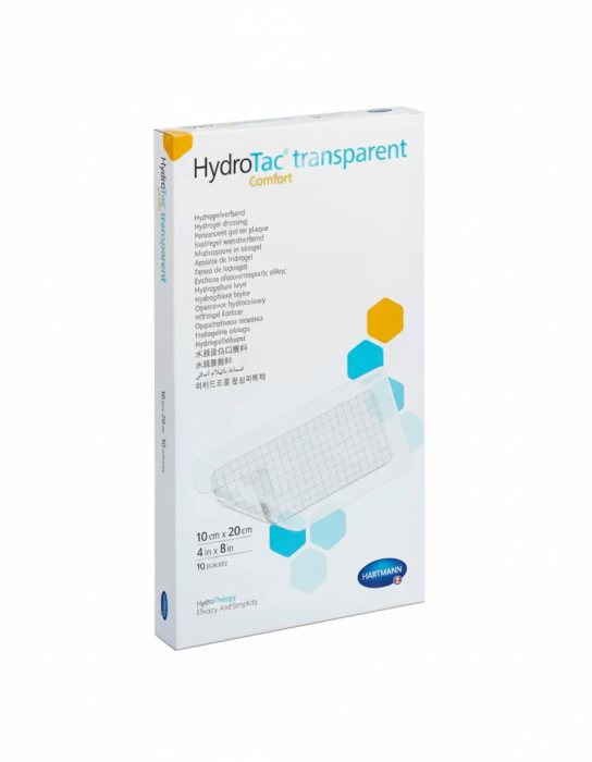Прозора гідрогелева пов'язка, виготовлена із гідратованого поліуретану. Зворотня сторона пов'язки вкрита водо-, та паронепроникним захисним шаром, що попереджає проникнення вологи та мікроорганізмів в рану. Пов'язка зволожує рану та поглинає ексудат в невеликих кількостях - це забезпечує створення вологого середовища в рані, що стимулює процес загоєння. HydroTac® transparent - атравматична пов'язка, не приклеюється до рани. З внутрішньої сторони пов'язка HydroTac® transparent comfort додатково має самоклеючий кант на основі гіпоалергенного клею - тому не потребує додаткової фіксації.