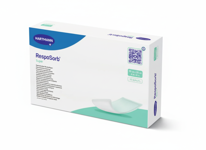 RespoSorb® Super швидко поглинає виділення з рани і зв'язує їх всередині абсорбуючої серцевини пов'язки. Підвищена здатність RespoSorb® Super до поглинання дозволяє зменшити необхідну частоту змін пов'язок. Це дає рані відпочити і є додатковим захистом від контамінації рани. Крім своїх абсорбуючих властивостей, RespoSorb® Super також забезпечує рані амортизуючий захист.