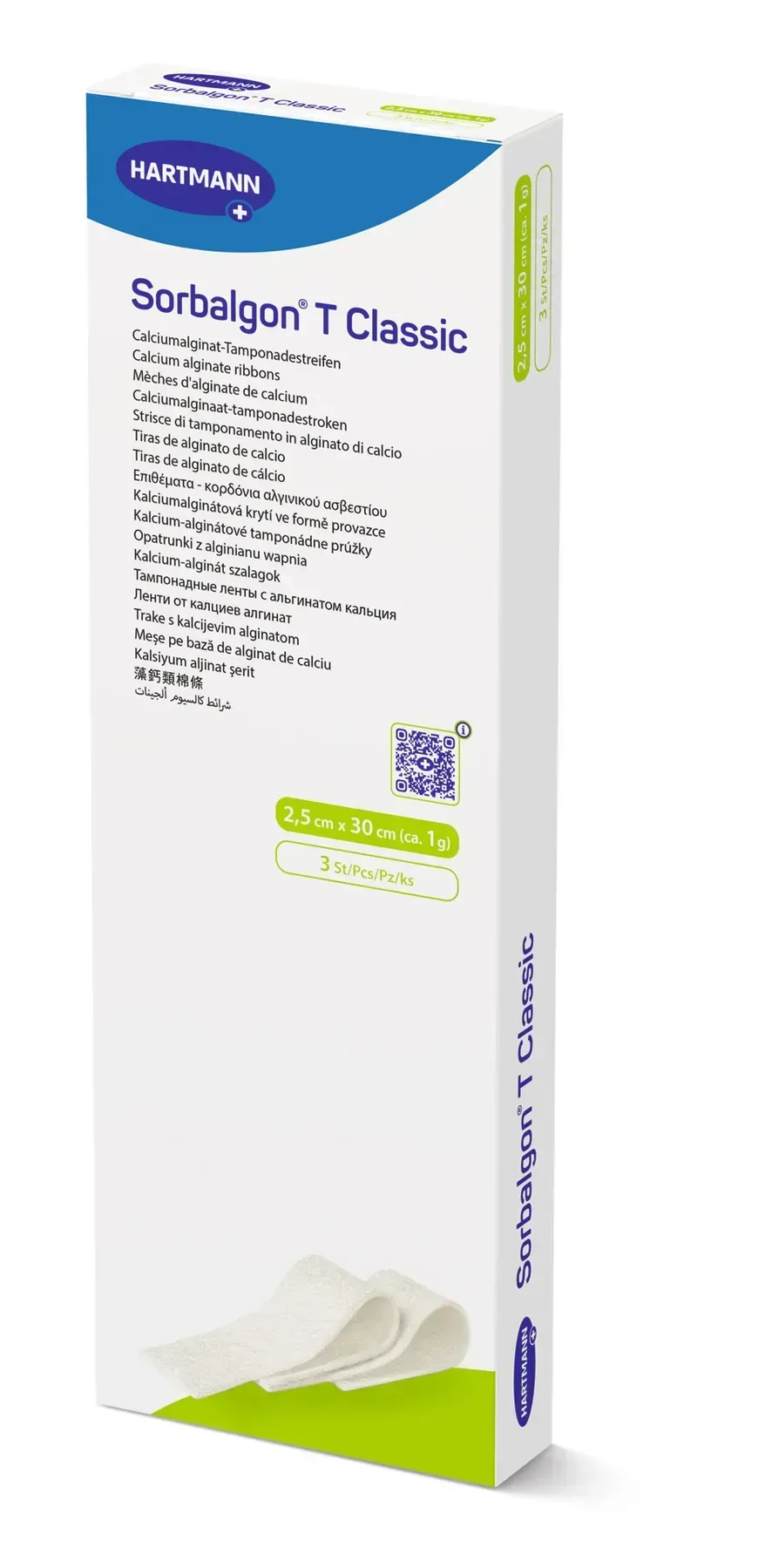 Sorbalgon® Classic — стерильна альгінатна пов’язка у формі стрічки (тампонада), виготовлена з натуральних волокон морських водоростей. Ідеально підходить для догляду за глибокими ранами з помірним та сильним виділенням.