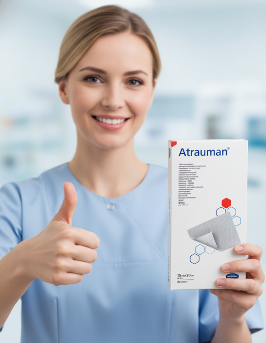 Пов'язка атравматична Atrauman® - це інноваційний медичний продукт, розроблений для дбайливого догляду за ранами. Виготовлена з м'якої мазевої тканини, ця пов'язка не прилипає до рани, що дозволяє легко та безболісно знімати її. Atrauman® створює оптимальне вологе середовище для швидкого загоєння рани, запобігає утворенню шрамів та забезпечує комфорт пацієнту під час лікування. Цей продукт є ідеальним вибором для ніжних та чутливих тканин, де важливо уникнути травмування та забезпечити ефективний догляд.