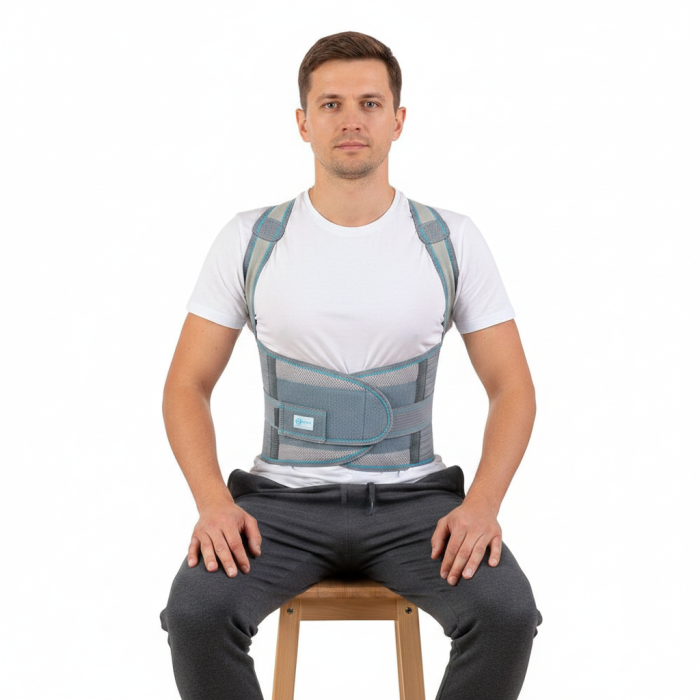 Коректор постави завдяки металевим ребрам жорсткості й наплічним лямкам поступово виправляє порушення постави. Фіксує, стабілізує й розвантажує грудний відділ хребта, нормалізує тонус м’язів спини, знімає біль. Додаткові стрічки дозволяють припасувати виріб по фігурі й самостійно регулювати ступінь натягу для максимального комфорту. Завдяки використанню повітро- й вологопроникної тканини шкіра під корсетом залишається сухою й не перегрівається.