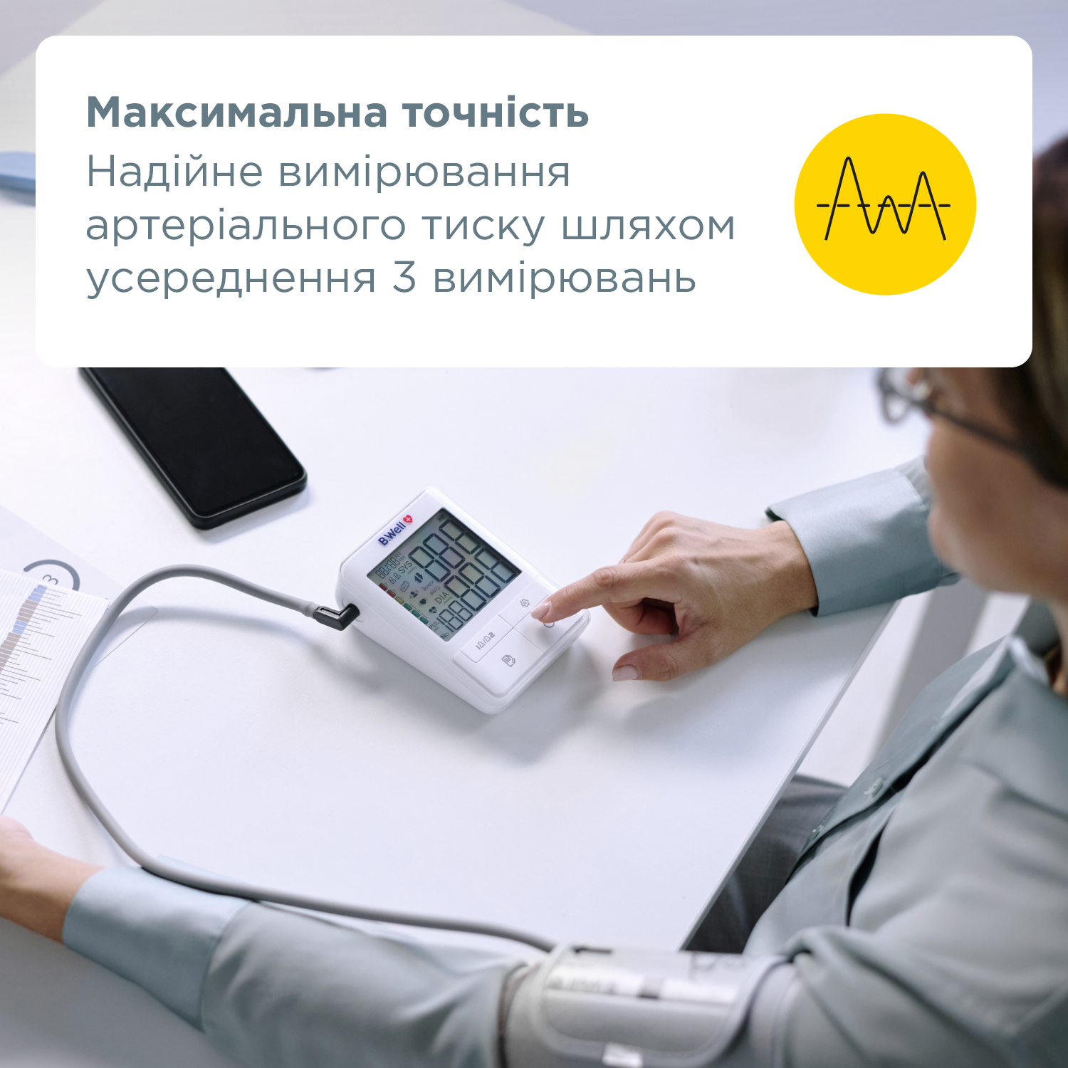 - Режим 3CHECK – автоматично виконує три послідовні вимірювання та обчислює середнє значення для більшої точності.