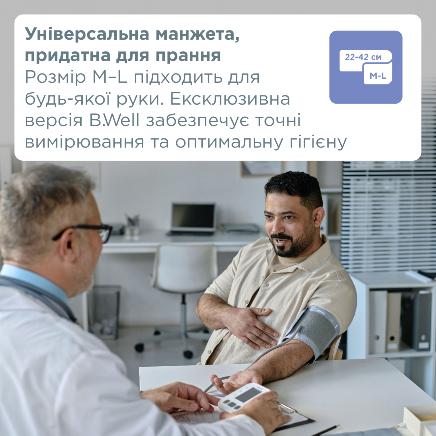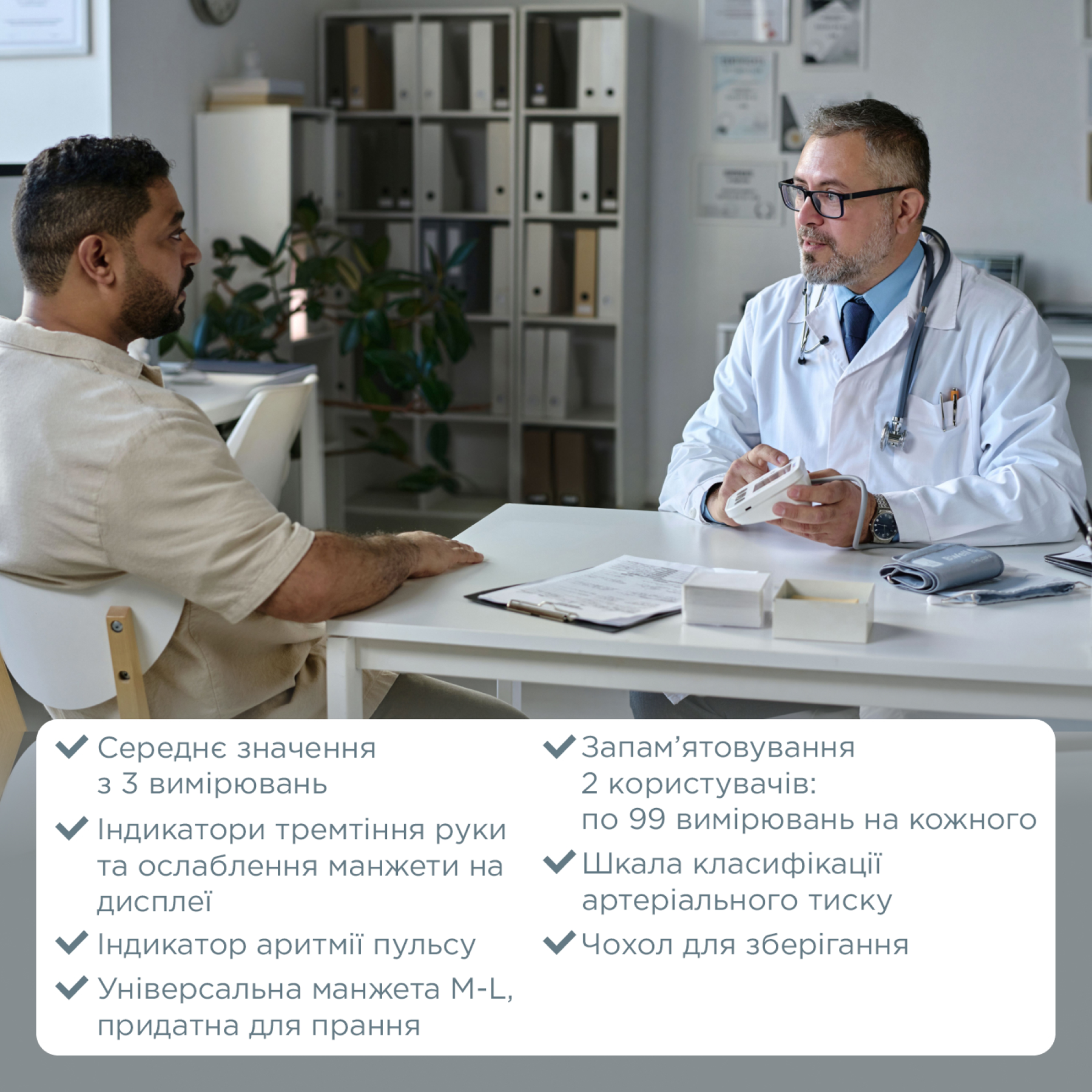- Універсальна анатомічна манжета (22–42 см) — підходить для більшості дорослих;