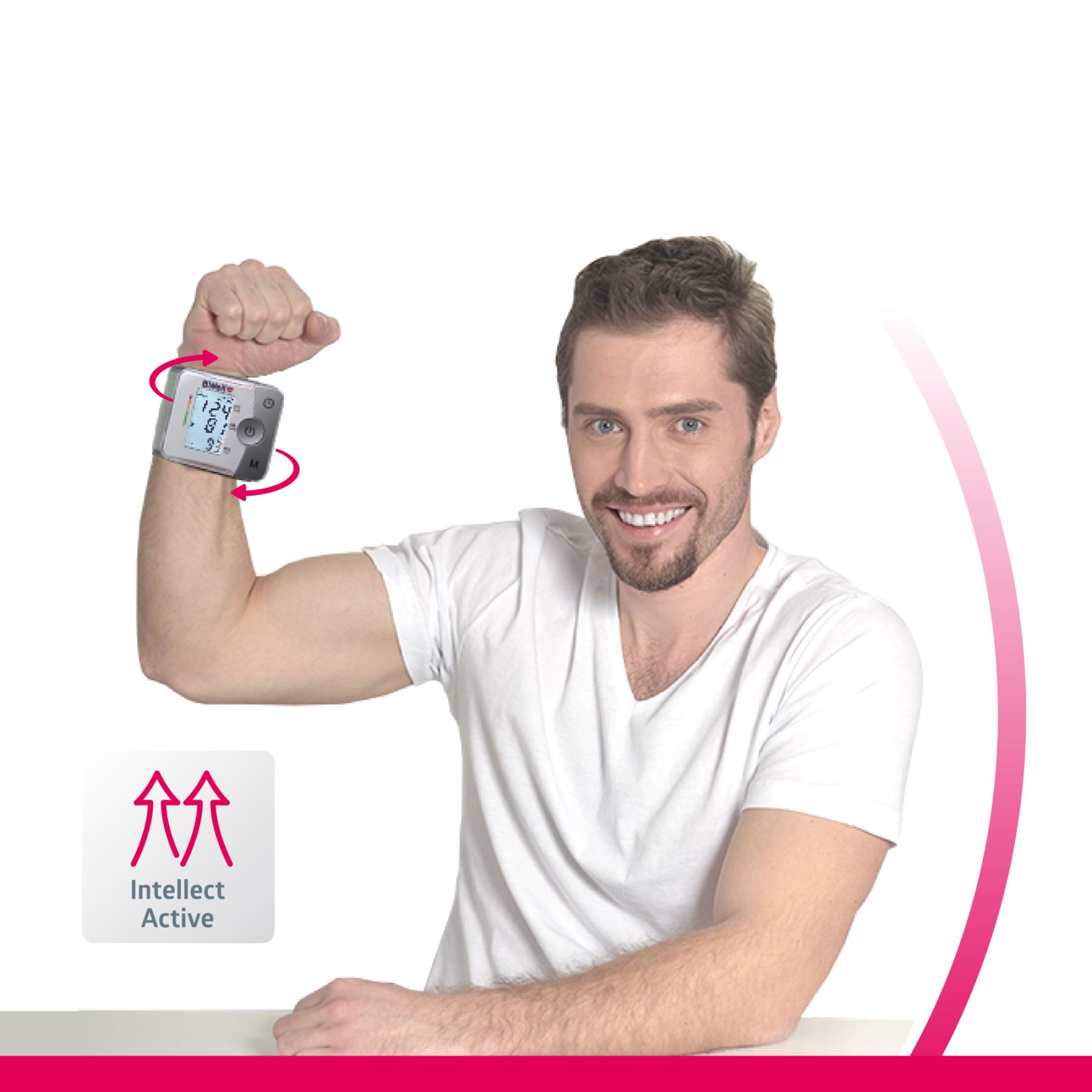 Підсвічування екрану Підсвічування екрана дозволить проводити вимірювання за будь-якого рівня освітленості. Технологія Intellect Active Вимірювання тиску починається на етапі нагнітання повітря в манжету, тим самим визначається рівень оптимального накачування манжети. Дисплей Тонометр має великий дисплей з цифрами та символами, що легко читаються. Інтуїтивно зрозуміле керування за допомогою всього однієї кнопки. Показання до застосування
