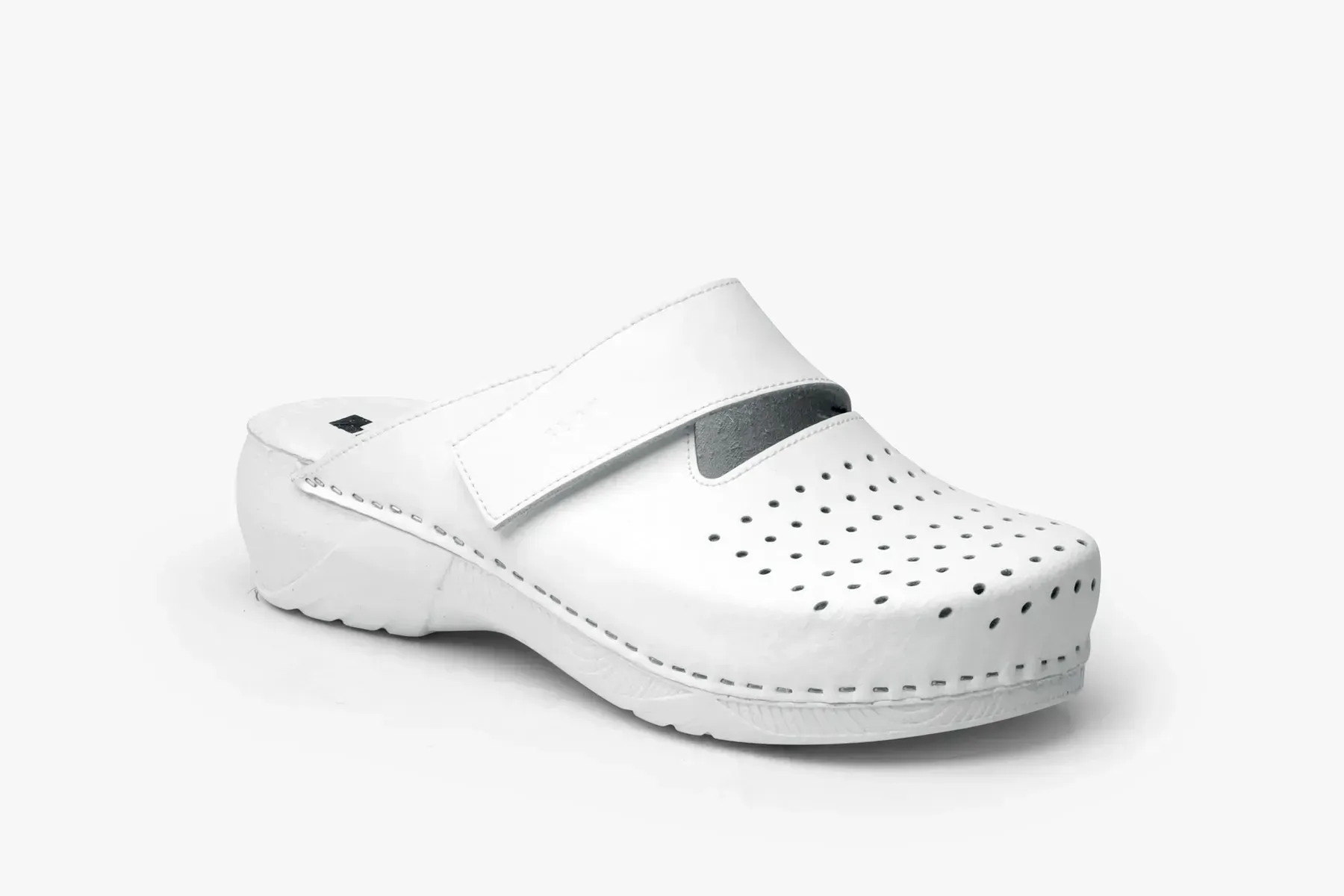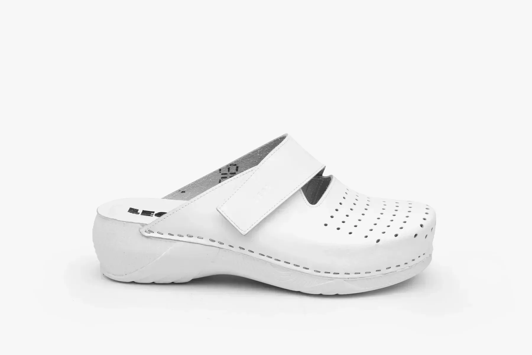 Жіноче Сабо Leon Білий 3500-38 ортопедія. Характеристики: Артикул: 3500 Білий 38, Колір: Білий, Матеріал верху: Натуральна шкіра, Вид підкладки: Масажний гель / меморі-піна, Матеріал підошви: Поліуретан, Країна виробник: Сербія.