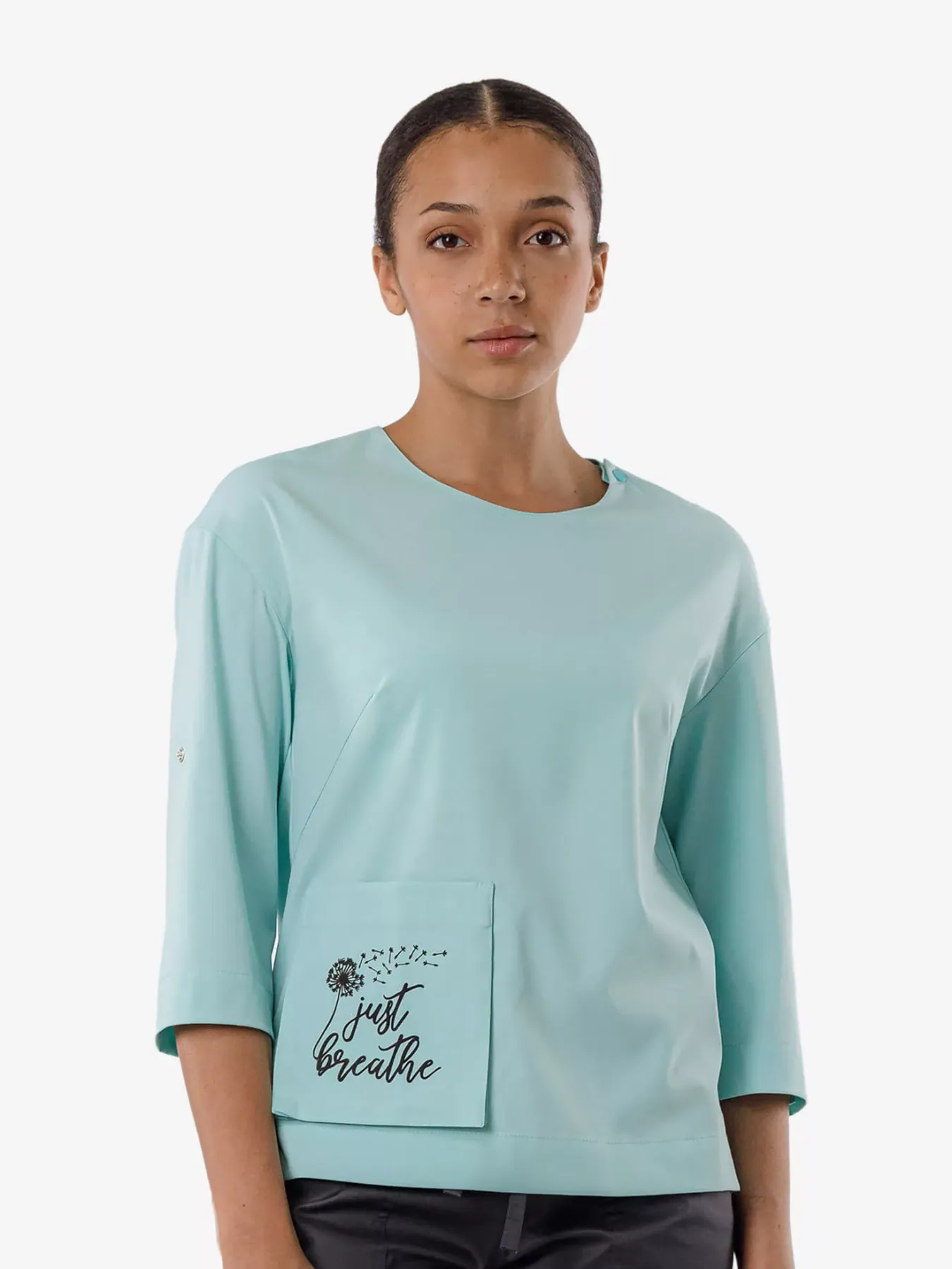 Дополнительным акцентом является кнопка на плече, гармонирующая с регулировочными застёжками на рукаве — это позволяет адаптировать длину рукава под индивидуальные потребности и рабочий комфорт.
