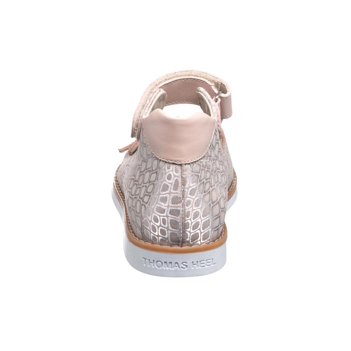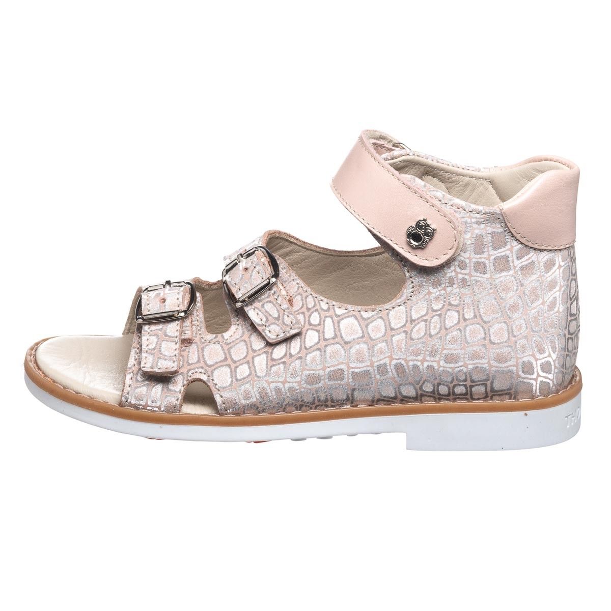 THEO LEO 1132 - босоніжки виконані з натуральної шкіри золотисто-бежевого кольору з принтом "рептилія". Устілка з анатомічним супінатором і підкладка - натуральна шкіра. Одягаються і фіксуються за допомогою липучки і двох застібок. Підошва з термопластичної гуми з каблуком Томаса - не ковзає і добре амортизує. Завдяки каблуку Томаса дитяча стопа не буде завалюватися усередину.
