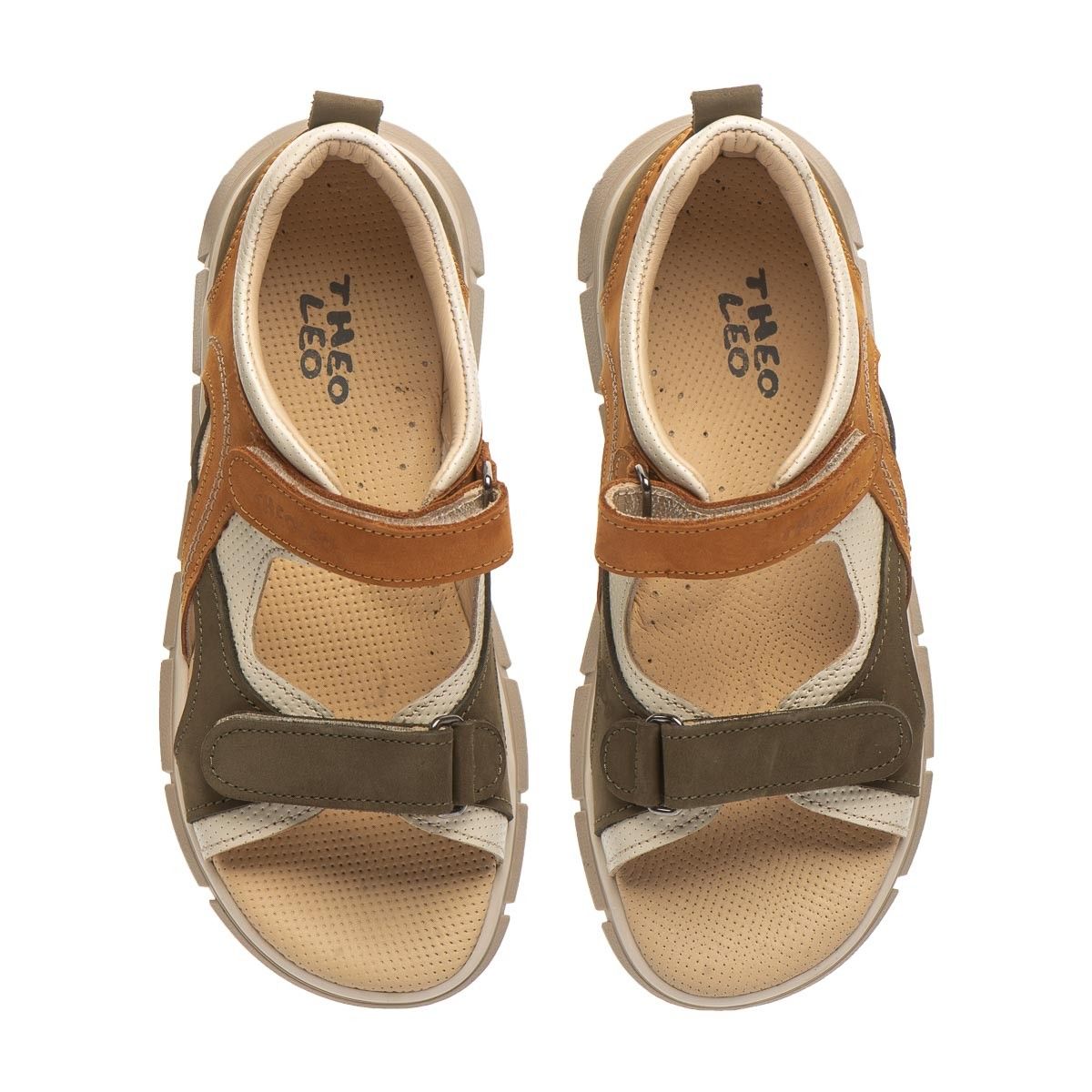 Theo Leo 3326 KH-BEIG актуальна модель босоніжок в такому виконанні гармонійно поєднує в собі найвищу якість, комфорт та стильний дизайн. Дитячі сандалі створені для активних незабутніх літніх прогулянок. Виготовлені з натурального нубука бежевого кольору та кольору хакі, для контрасту кольору та фактури додані вставки білого кольору. Зручність та швидкістю взування забезпечать липучки. Задник - жорсткий, стандартний по висоті.