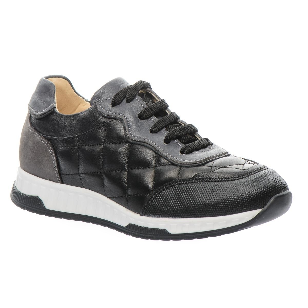 Дитячі кросівки пошиті на контрасті матеріалів для створення фактури та надання парі оригінальності.