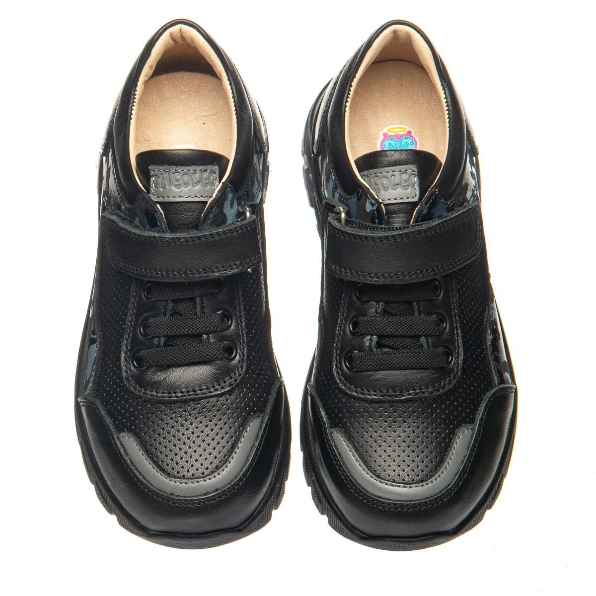 Theo Leo 0093 - кросівки для хлопчика з натуральної шкіри на модній підошві. Модель декорована перфорацією та синьо-блакитною вставкою забарвлення мілітарі. Устілка і підкладка - натуральна шкіра. Присутній анатомічний супінатор. Модель на шнурках і одній липучці. Підошва з термопластичної гуми, не ковзає і добре амортизує.