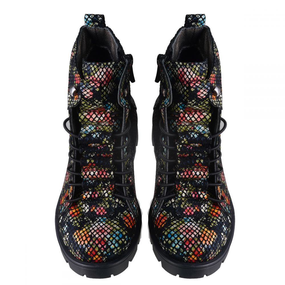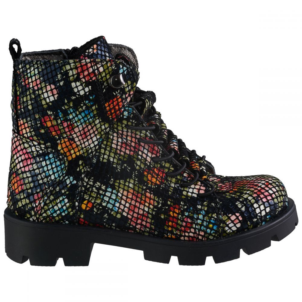 Осінні черевики для дівчинки виконані з натуральної шкіри з красивим квітковим різнобарвним принтом.