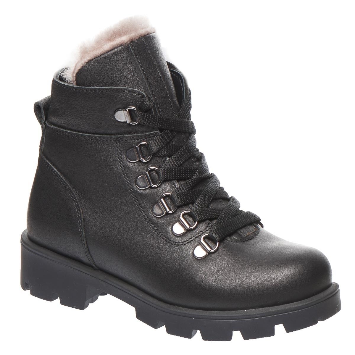 Theo Leo 1389 - стильні зимові черевики для дівчинки з натуральної шкіри. Модель на блискавці, декорована шнурками. Підкладка та устілка - натуральне хутро. Анатомічна устілка з суппінатором підтримує поздовжнє склепіння стопи. Підошва - термопластична гума, рифлена, не ковзає і добре амортизує.