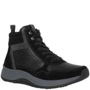 Ортопедичні черевики High Flyer колекції Ganter Aktiv не тільки чудово виглядають, але й підтримують кожен крок завдякизапатентованій технології roll-through (кочення). Чорно-сірі елементи на високофункціональній підошві створюють модний колірний блок. Поєднання шкіри наппа та нубуку з ретельно продуманими деталями, підкреслює елегантний вигляд цього чоловічого взуття.