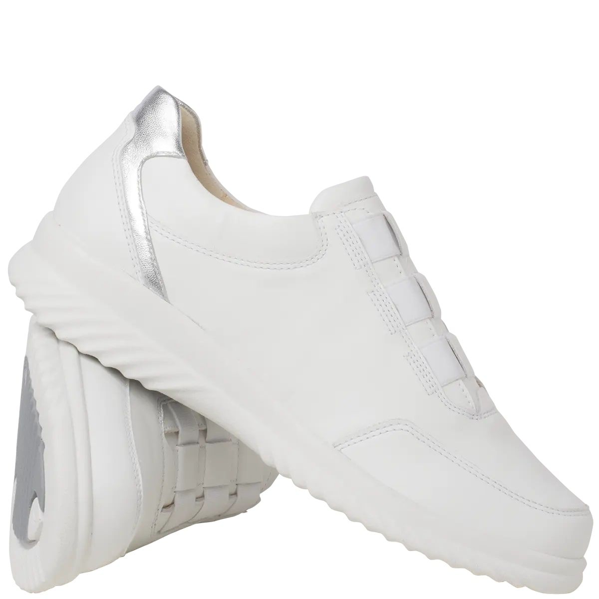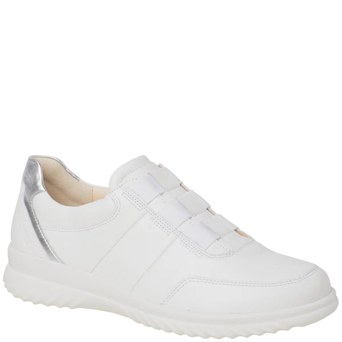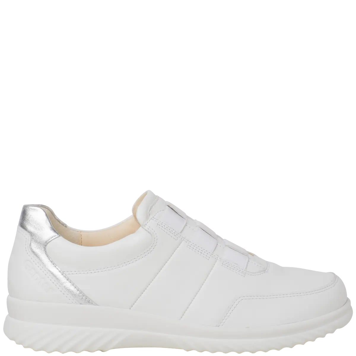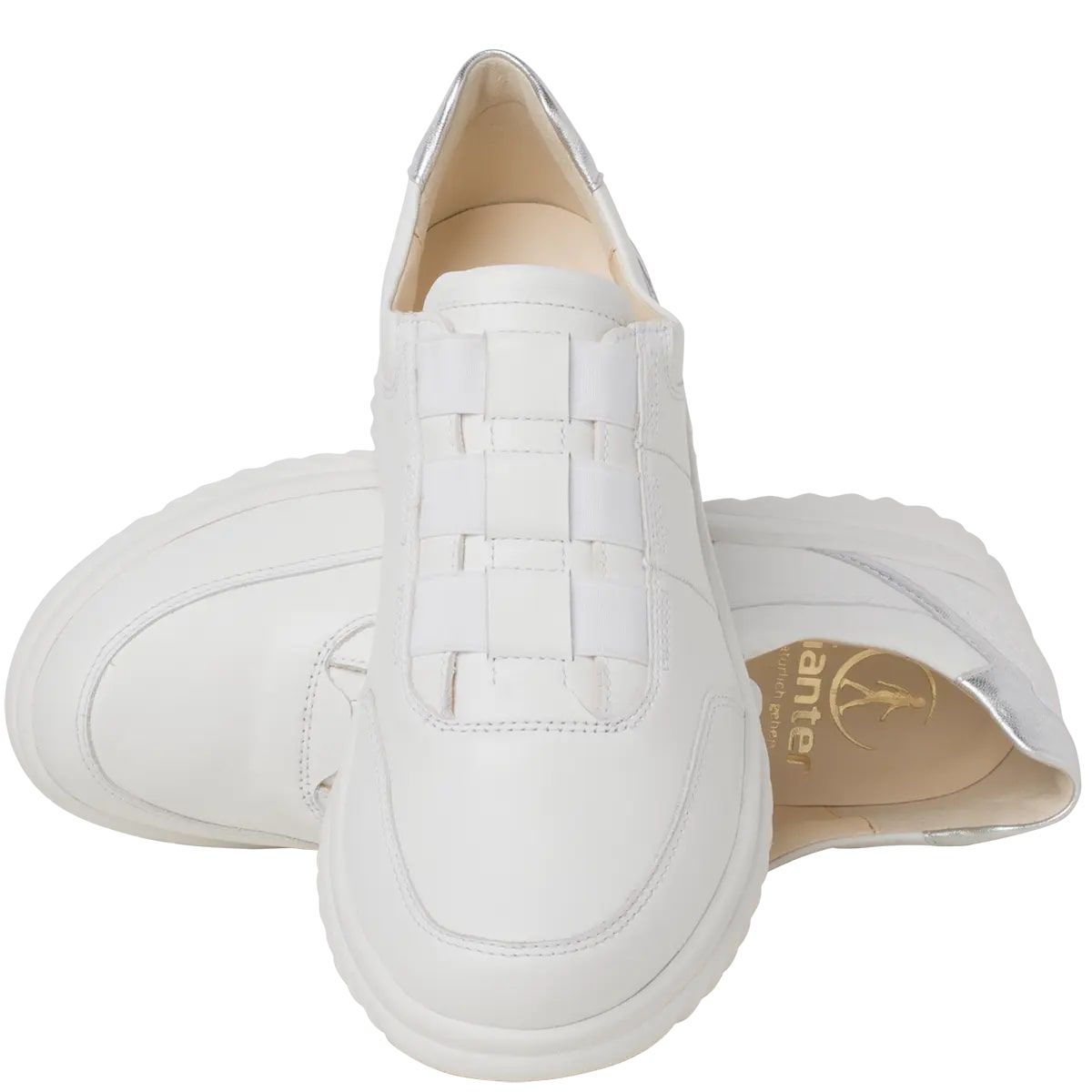 Ортопедичні жіночі кросівки Heike від Ganter це абсолютний універсал - повсякденний і водночас шикарний! Спортивний вигляд доповнюють високоякісні матеріали. Біла гладка шкіра надає модного вигляду, особливо в тональному поєднанні з підошвою. Металеві аплікації на п'яті додають взуттю особливий відтінок. Еластична стрічка робить кросівки практичними сліпонами. Внутрішня підкладка виготовлена з м'якої шкіри, матеріал повітропроникний, міцний і ніжний до шкіри.