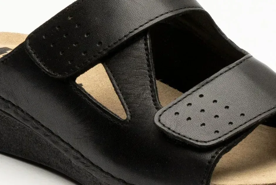 Жіночі шльопанці Leon Чорний 5010 ортопедія. Характеристики: Артикул: 5010 Чорний, Колір: Чорний, Матеріал верху: Натуральна шкіра, Вид підкладки: Масажний гель / меморі-піна, Матеріал підошви: поліуретан і протектор проти ковзання, Країна виробник: Сербія.