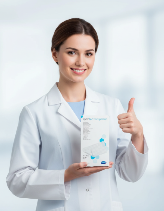 Прозрачная гидрогелевая повязка, изготовленная из гидратированного полиуретана. Обратная сторона повязки покрыта водо- и паронепроницаемым защитным слоем, что предупреждает проникновение влаги и микроорганизмов в рану. Повязка увлажняет рану и поглощает экссудат в небольших количествах – это обеспечивает создание влажной среды в ране, что стимулирует процесс заживления. HydroTac® transparent – атравматическая повязка, не приклеивается к ране.