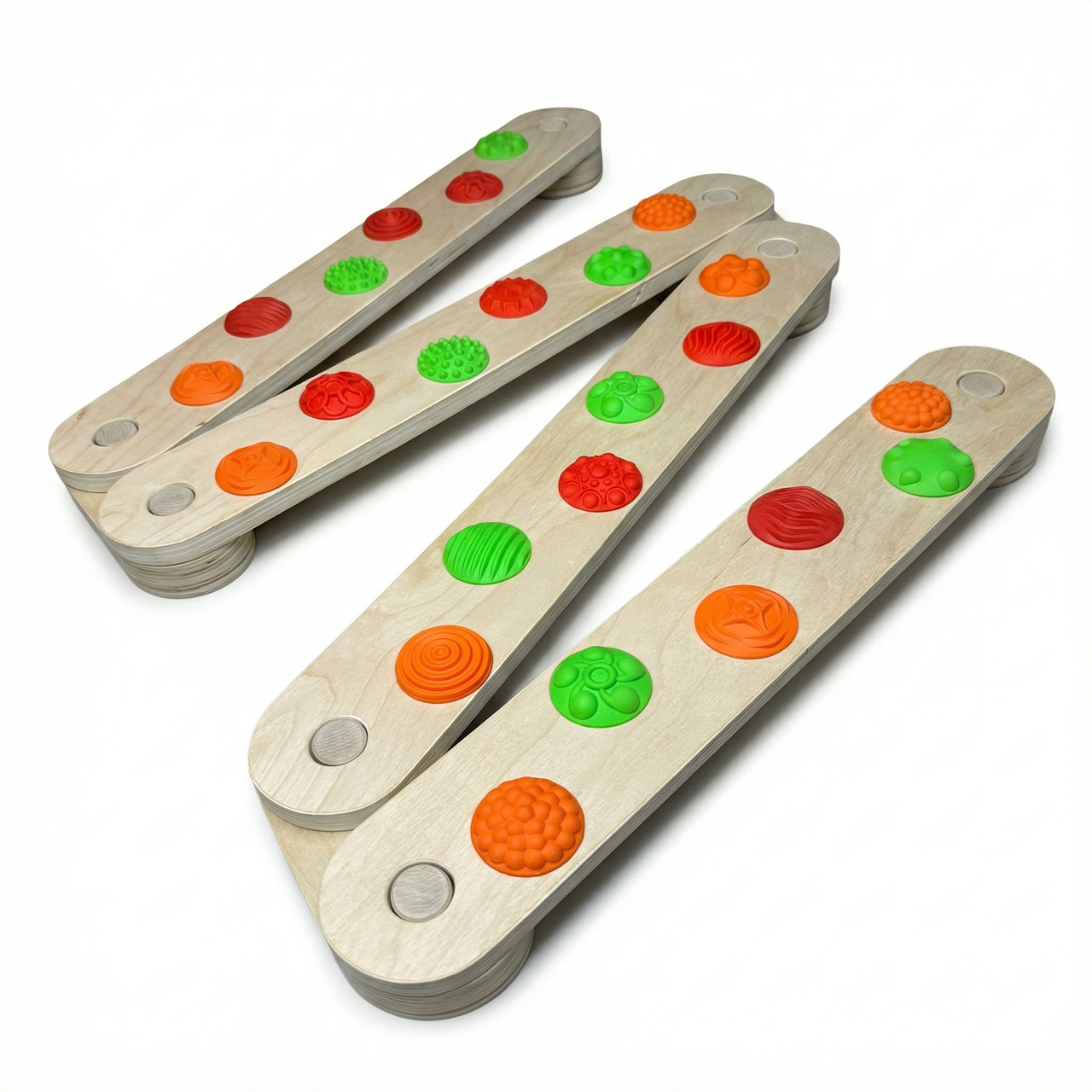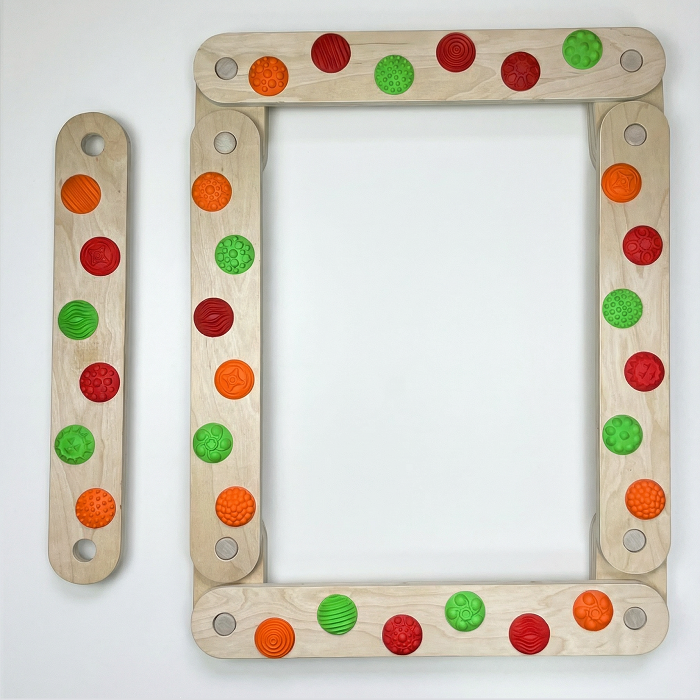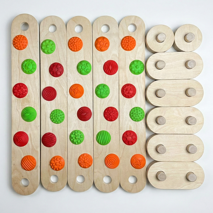 - 30 массажных съёмных элементов — по 6 на каждой доске, разного цвета и рельефа.