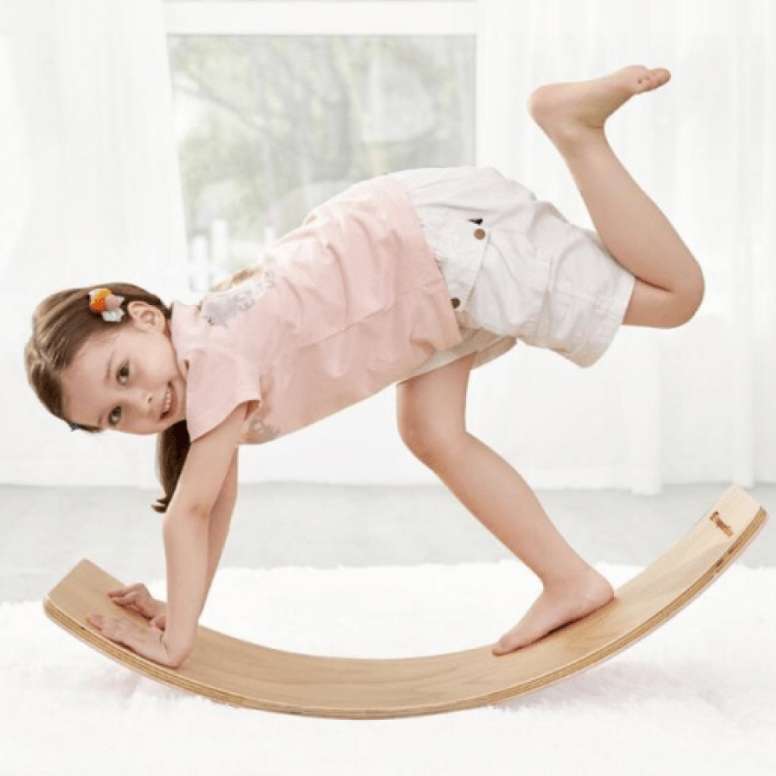 Деревянный балансборд (рокерборд) — это универсальная развивающая игрушка и тренажёр для детей, который помогает развивать баланс, координацию и воображение. Благодаря простой форме он может использоваться как качалка, мостик, горка или даже элемент сюжетной игры.
