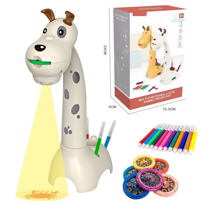 Замечательный набор для маленьких художников. Проектор отображает изображение на бумаге, позволяя ребёнку легко его обвести и раскрасить. Благодаря разнообразным тематическим картинкам набор развивает креативность и фантазию малыша.