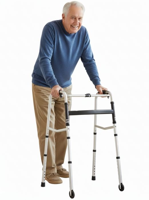 Тридюймові колеса на передніх ніжках допомагають без зусиль пересувати ходунці вперед, а гумові наконечники на задніх ніжках запобігають ковзанню.