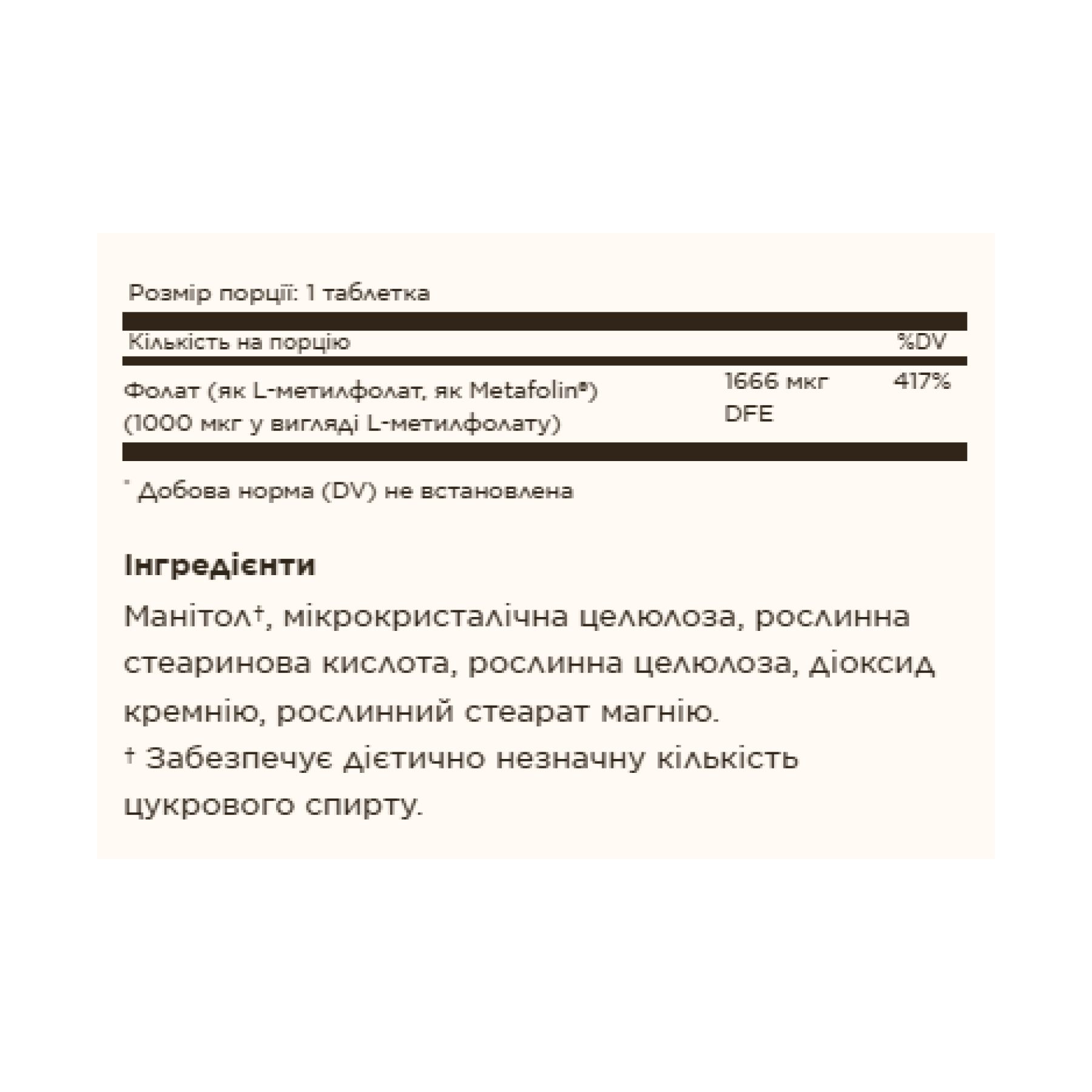 Folate 1000 mcg (as Metafolin) - 120 tabs