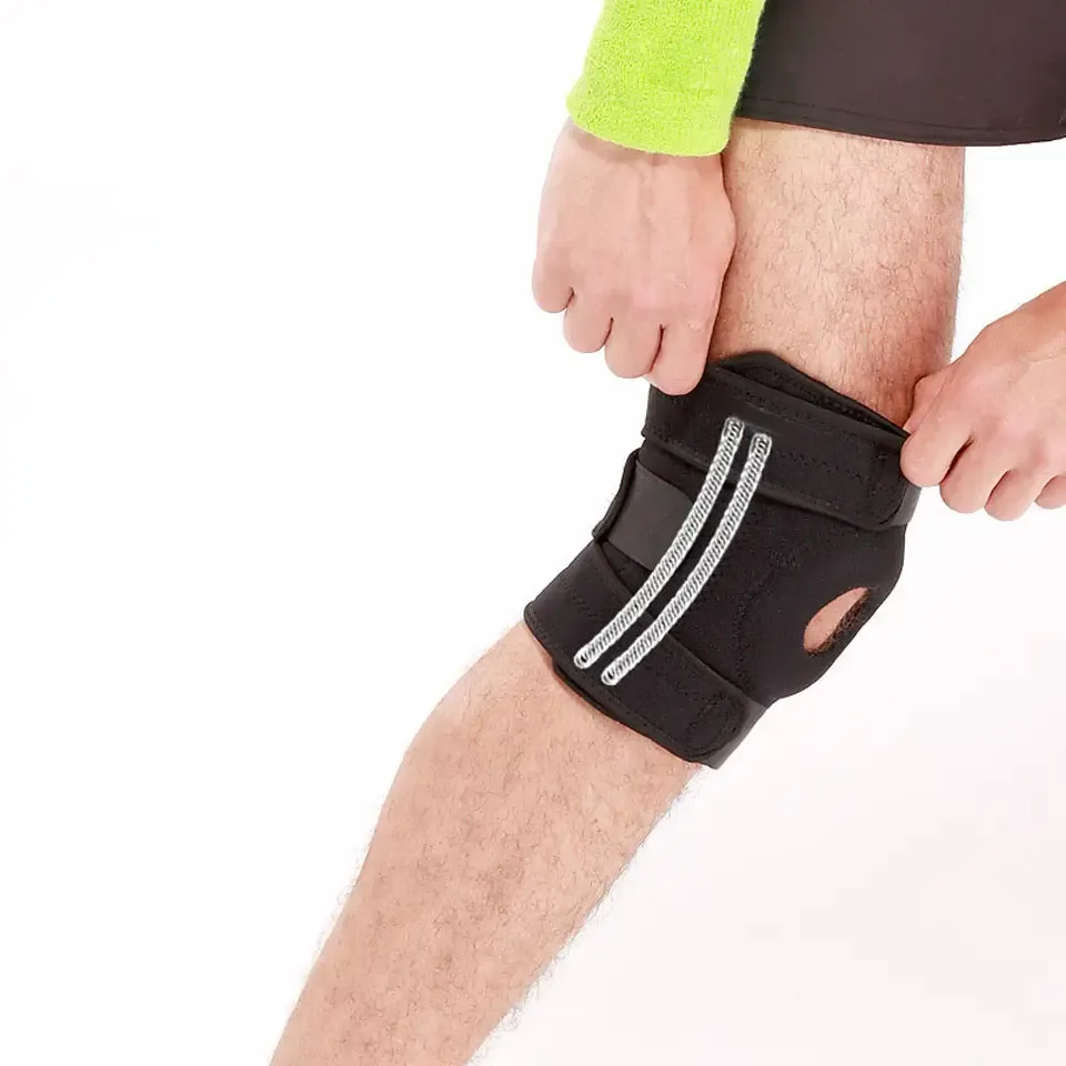 Виготовлений з дихаючого неопрена з м'якою підкладкою. Силіконове кільце щільно підтримує колінну чашечку. 2-ва гнучких плетених металевих ребра жорсткості по обидва боки надійно тримають коліно з обох сторін, але не стримує рухів під час занять спортом.