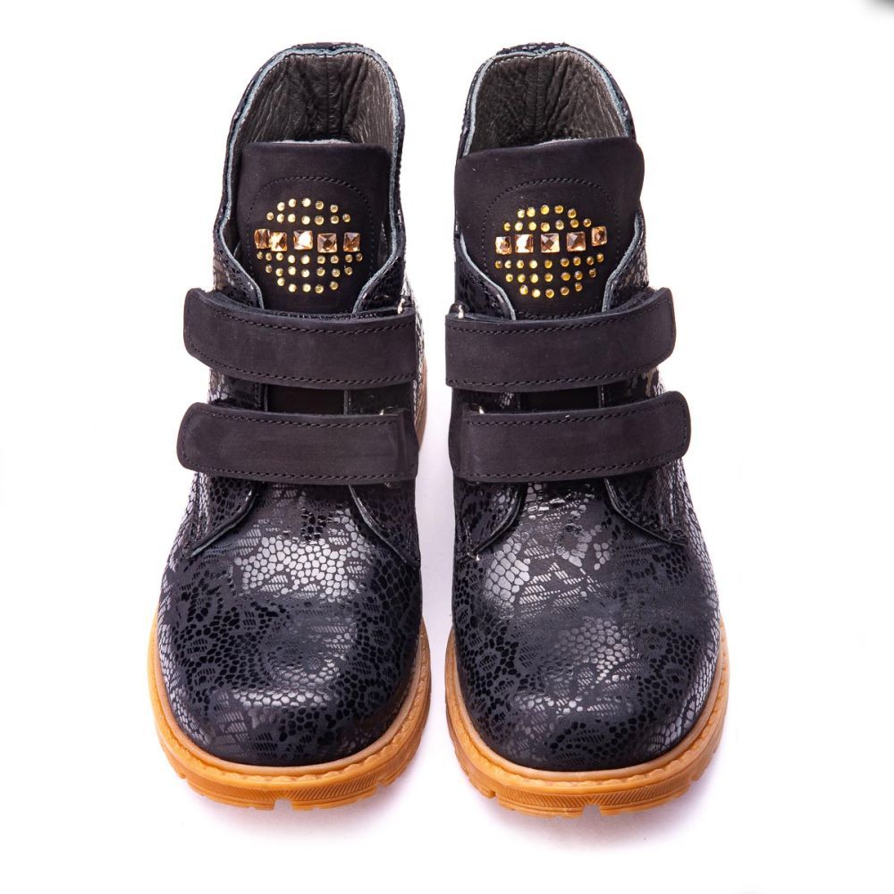 Стильні нубукові черевики Theo Leo 1164, насиченого чорного кольору, які своїм дизайном зацікавили багатьох мам та їхніх дітей. Модель виконана з натуральних матеріалів, підкладка фліс, що утеплює, - це те, що точно створить комфорт ніжці і не буде її парити.