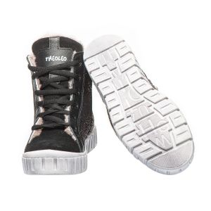 Theo Leo 604423 дитячі зимові черевики для дівчинки пошиті в популярному спортивному стилі, який з кожним роком підкорює все більше поціновувачів комфорту та легкості. Зимові черевики для дівчинки пошиті з натуральної шкіри чорного кольору, з яскравими блискітками. Додатковою окрасою взуття є 4 зірки з дивовижним переливом. Всередині утеплені натуральною цигейкою. В якості застібки в такій моделі використовується бокова блискавка, яка для кращої фіксації ніжки доповнена шнурівкою.