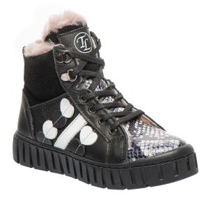Theo Leo 609423 мега комфортні та стильні зимові черевики для дівчинки виготовлені в модних тенденціях. Дитячі зимові черевики пошиті з натуральної шкіри класичного чорного кольору, всередині утеплені натуральною цигейкою. Чіткі декоративні шви по периметру взуття слугують стильним оздобленням цієї пари зимового взуття, бокова частина черевик прикрашена декоративними сердечками. Зручність взування забезпечить бокова блискавка, яка для кращої фіксації стопи доповнена шнурівкою.