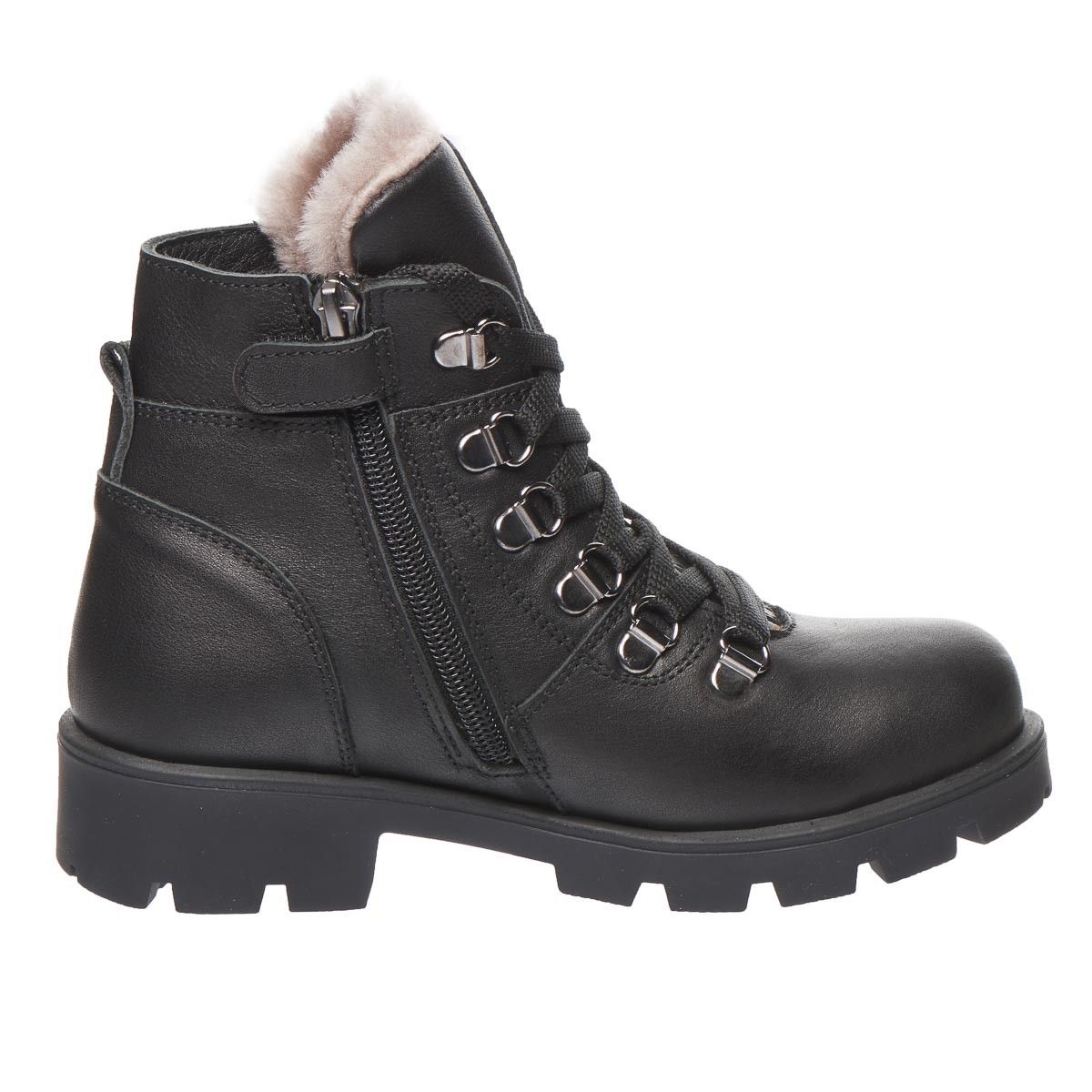Theo Leo 1389 - стильні зимові черевики для дівчинки з натуральної шкіри. Модель на блискавці, декорована шнурками. Підкладка та устілка - натуральне хутро. Анатомічна устілка з суппінатором підтримує поздовжнє склепіння стопи. Підошва - термопластична гума, рифлена, не ковзає і добре амортизує.
