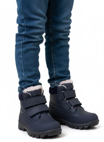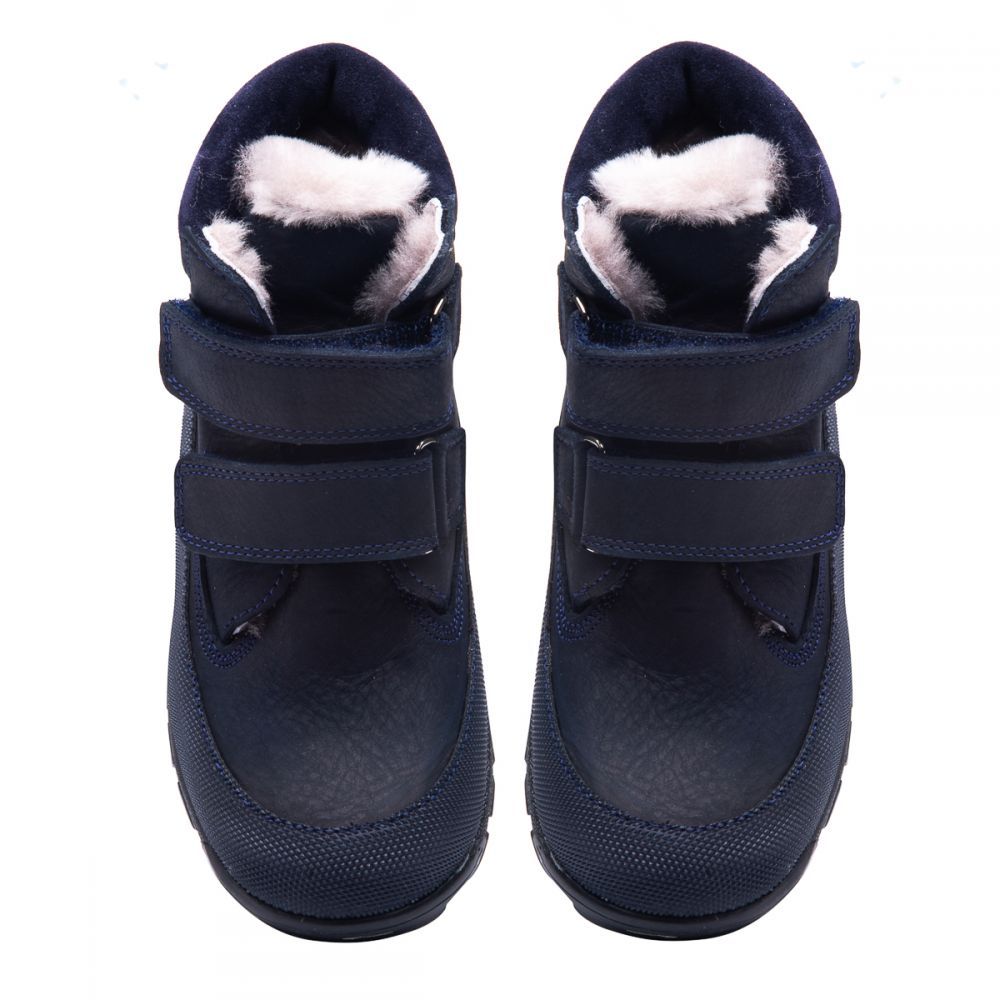 Theo Leo 855 - комфортні зимові черевики з натуральної шкіри темно синього кольору. Взуття фіксується на нозі за допомогою 2х липучок. Носок моделі попереду і по периметру укріплений вставкою зі зносостійкої шкіри. Всередині - натуральне хутро. У взутті супінатор і анатомічна устілка. Підошва - термопластіковая гума, не ковзає і добре амортизує.