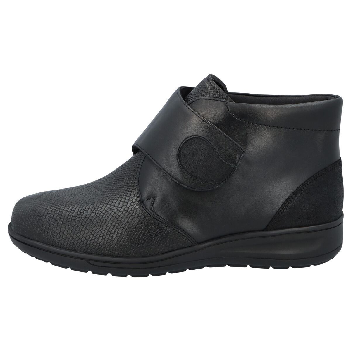 Жіночі черевики Solidus Kate чорного кольору з сріблястим покриттям, з підтримкою склепінь стопи для профілактики плоскостопості та деформацій стоп. Виготовлені з високоякісної шкіри, ці чоботи відрізняються довговічністю та розкішним виглядом. Шкіра плавно прилягає до стопи, забезпечуючи тривалий комфорт. Еластичний матеріал по всій площі передньої частини стопи забезпечує максимальний комфорт, оскільки немає дратівливих швів, які можуть тиснути. Широка застібка-липучка легко регулюється, забезпечує хорошу підтримку та значно полегшує взування та знімання взуття. Поєднання матеріалів також робить взуття візуально привабливим. Черевики Solidus Kate – ідеальне рішення для демісезонного періоду. Стильний дизайн із текстурною вставкою робить цю модель справжнім хітом осінньої колекції.