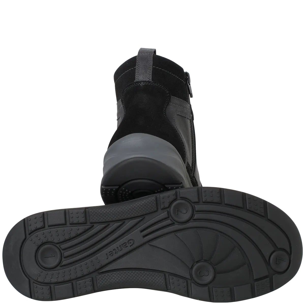 Ортопедичні черевики High Flyer колекції Ganter Aktiv не тільки чудово виглядають, але й підтримують кожен крок завдякизапатентованій технології roll-through (кочення). Чорно-сірі елементи на високофункціональній підошві створюють модний колірний блок. Поєднання шкіри наппа та нубуку з ретельно продуманими деталями, підкреслює елегантний вигляд цього чоловічого взуття.