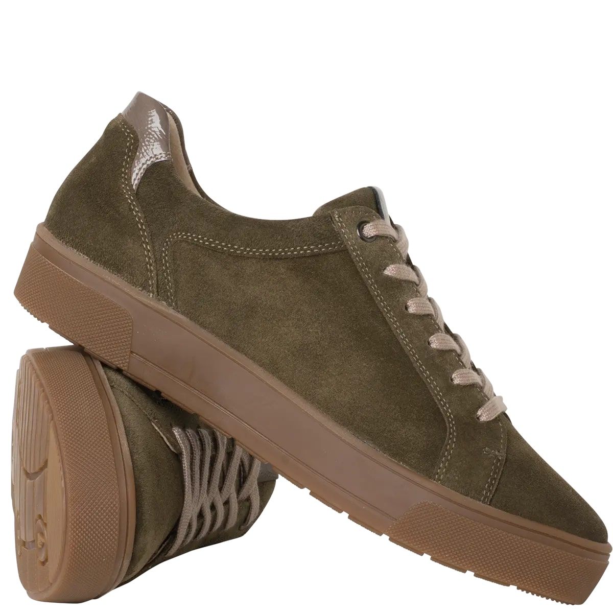 Ортопедичні кеди Helena від Ganter стильні і комфортні, вирізняються поєднаннями матеріалів та кольорів. М'яка замша поєднується з блискучими вставками з м'ятої лакованої шкіри вишуканого темно-зеленого кольору. Аплікація на п'яті створює сучасний вигляд. Сучасна підошва втілює витончений спортивний стиль, забезпечуючи чудове зчеплення.