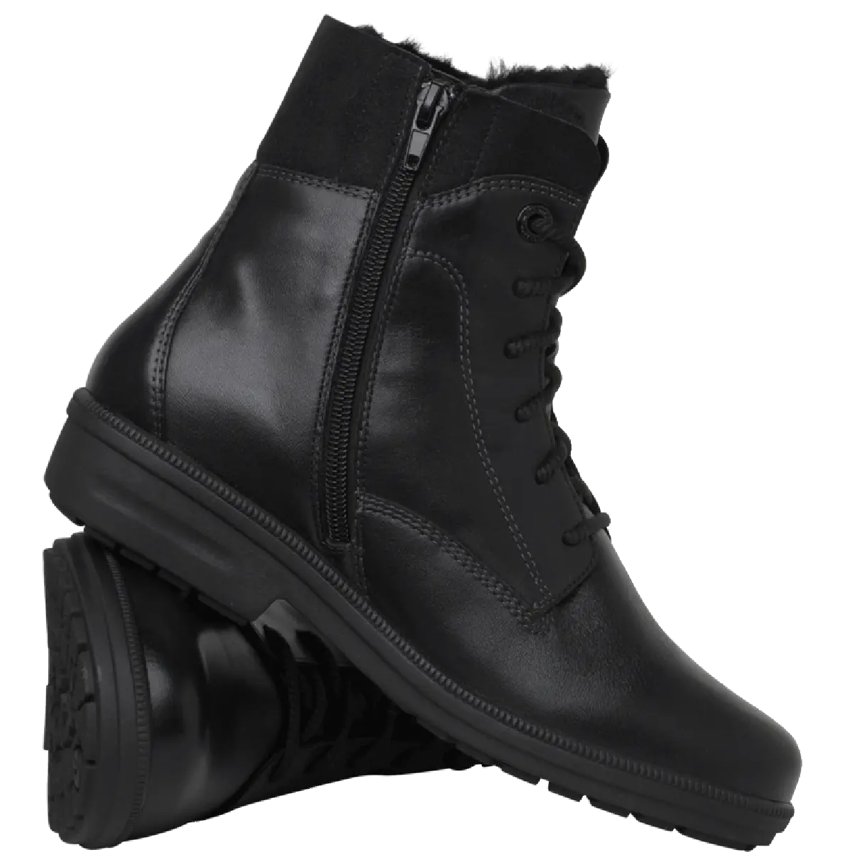 Ортопедичні зимові черевики Kathy від Ganter стильні та комфортні. Виготовлені з чорної гладкої шкіри, ботильйони є ідеальним універсалом у комфортній ширині K. Холодні температури не зашкодять вашим ногам у цьому взутті, завдяки затишній підкладці з овечої вовни, що зігріває їх. Шнурівка створює індивідуальні можливості регулювання, застібка-блискавка робить їх особливо зручними в користуванні. Халяву з пухнастої овечої шкіри можна носити догори або загорнути на черевики. Це означає, що ботильйони не тільки виглядають сучасно, але й наповнювачі допомагають уникнути неприємних точок тиску.