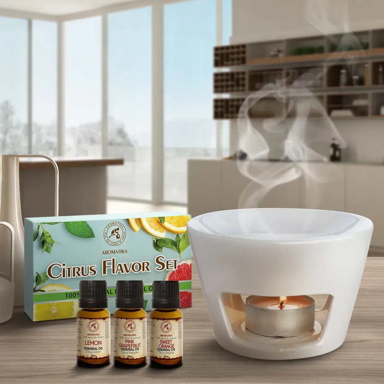 Набір ефірних олій «Цитрусовий» Ароматика має цілу низку терапевтичних властивостей і може застосовуватися для оздоровлюючих процедур з призначенням позитивного впливу на центральну нервову систему. Цитрусові ефірні олії відмінно підіймають настрій, тонізують, освіжають, бадьорять і мають стимулюючу дію. Такі олії корисно використовувати при розумовому перенапруженні, розсіяній увазі, апатії, депресії. Вони сприяють правильному диху і покращують концентрацію уваги. З їх допомогою можна підвищити працездатність, а також зберегти та примножити здоров'я і красу, використовуючи олії в догляді за шкірою, волоссям і нігтями.