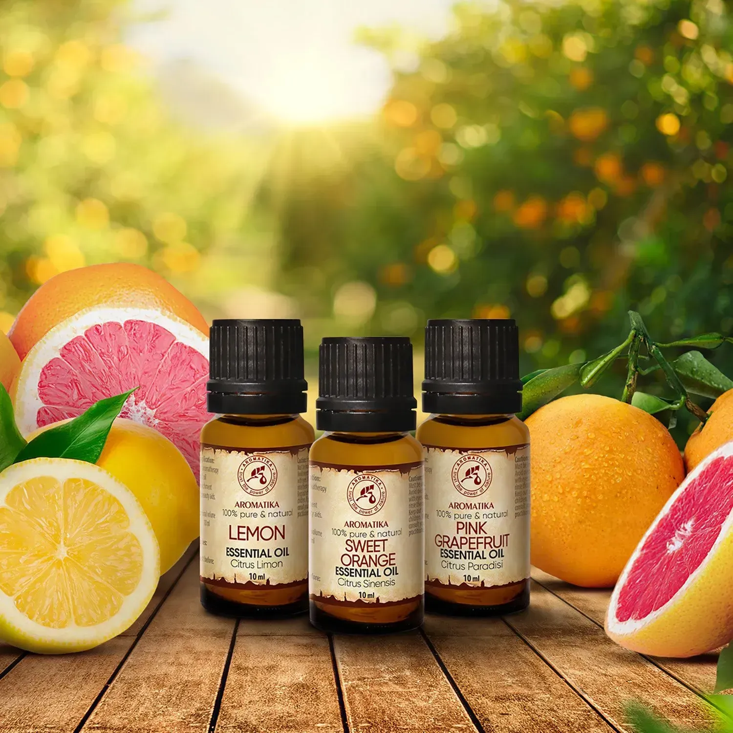 Склад набору: ефірна олія апельсинова 10 мл, ефірна олія грейпфрутова 10 мл, ефірна олія лимонна 10 мл.