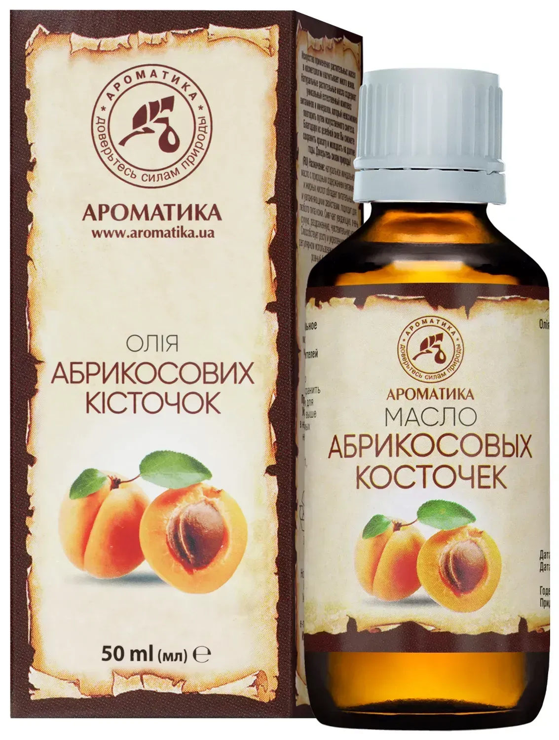 Олія абрикосових кісточок Ароматика – це рослинна олія, отримана з ядер абрикосових кісточок. Абрикосова олія, з природним вмістом натурального воску, вітамінів і мінералів, широко використовується в косметиці як основа зволожуючих і живильних композицій. Вона підходить для повсякденного догляду за змішаним типом шкіри, її також рекомендують застосовувати для дитячої та чутливої шкіри. Ця жирна олія легко розподіляється і вбирається, добре живить шкіру, відмінний варіант для масажу чутливої шкіри. Якщо у Вас загрубіла шкіра, то масло абрикосових кісточок допоможе її пом'якшити, воно робить шкіру гладкою, красивою та оксамитовою. Крім того, воно надає омолоджувальний ефект – живить зів'ялу, суху шкіру, допомагає розгладжувати дрібні зморшки на обличчі. Входить в кращі олії від розтяжок і целюліту, тому що ефективно відновлює еластичність шкіри. Купити олію абрикосових кісточок, а також інші базові олії для масажу і догляду за шкірою можна в нашому інтернет-магазині.