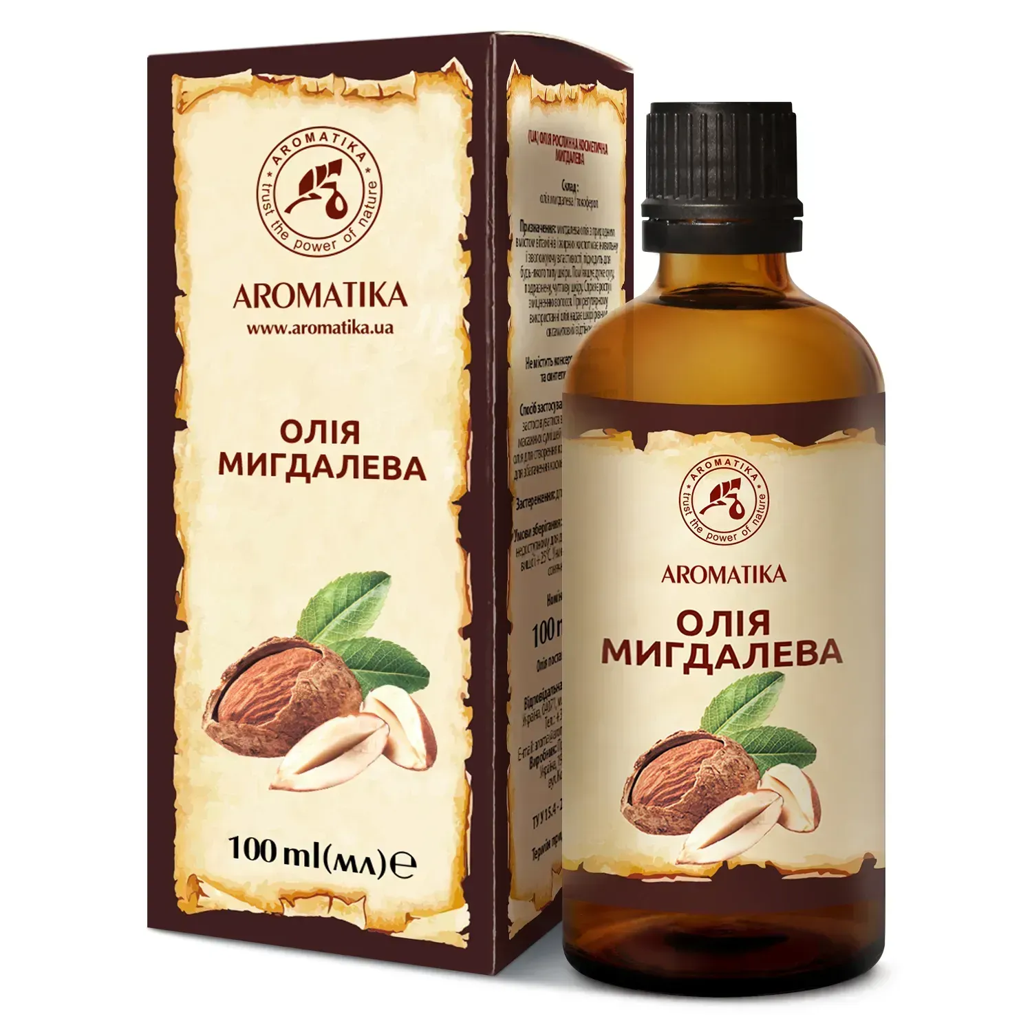 Олія мигдалева Ароматика – це рослинна олія, отримана з насіння солодкого мигдалю. Мигдалева олія – це своєрідний універсал з широким спектром застосування. Це відмінний засіб для росту і зміцнення волосся. Вона підходить для будь-якого типу шкіри, але особливо ефективно діє на в'янучу, дуже суху, подразнену і чутливу шкіру, пом'якшуючи та зволожуючи її. Мигдалева олія для обличчя з природним вмістом вітамінів і жирних кислот уповільнює процеси старіння клітин епідермісу, а завдяки вітаміну F запобігає розширення пор і налагоджує роботу сальних залоз. При регулярному використанні олія мигдалю надає шкірі рівний оксамитовий відтінок. Особливо цінна мигдалева олія для масажу. В інтернет-магазині «Ароматика мрії» Ви можете мигдалеву олію для тіла купити за вигідною ціною.