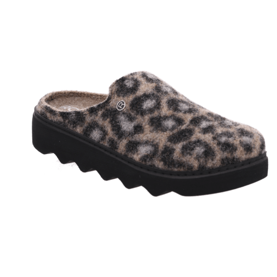 Firenze від ROHDE - тапочки в модному леопардовому дизайні, верх виготовлено з теплоізоляційної повсті з утеплюючим фетром всередині. 100% ефект гарного самопочуття: ці жіночі сабо ROHDE Firenze кольору чорний леопард загортають ваші ноги в м'який текстиль. Комфортні тапочки відмінної якості з м'якою та гнучкою підошвою. М'які, легкі, теплі, з ідеальною посадкою, мають знімну фетрову устілку.