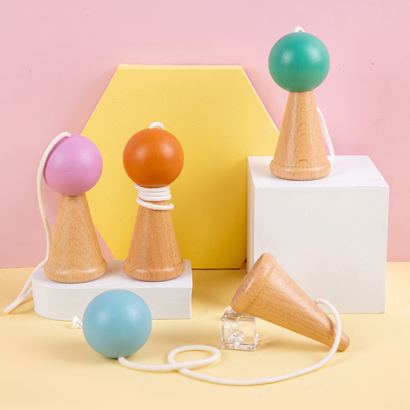 Это деревянная игрушка-кендама «Мороженое» — компактная и яркая версия классической японской игры, стилизованная под рожок мороженого. Она сочетает в себе веселую эстетику с развивающими упражнениями, которые развивают координацию движений, внимательность и ловкость у детей. Подходит как для домашнего использования, так и в качестве подарка детям дошкольного и младшего школьного возраста.