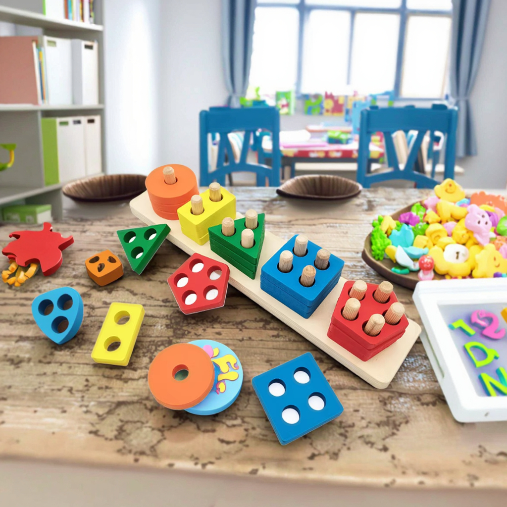 Сортер «Фигуры» — это яркая деревянная игрушка в стиле Монтессори, предназначенная для развития сенсорных, моторных и когнитивных навыков у детей от 1 года. Игра помогает ребенку изучать формы, цвета и пространственные взаимосвязи через игру, способствуя развитию логики, внимания и координации.