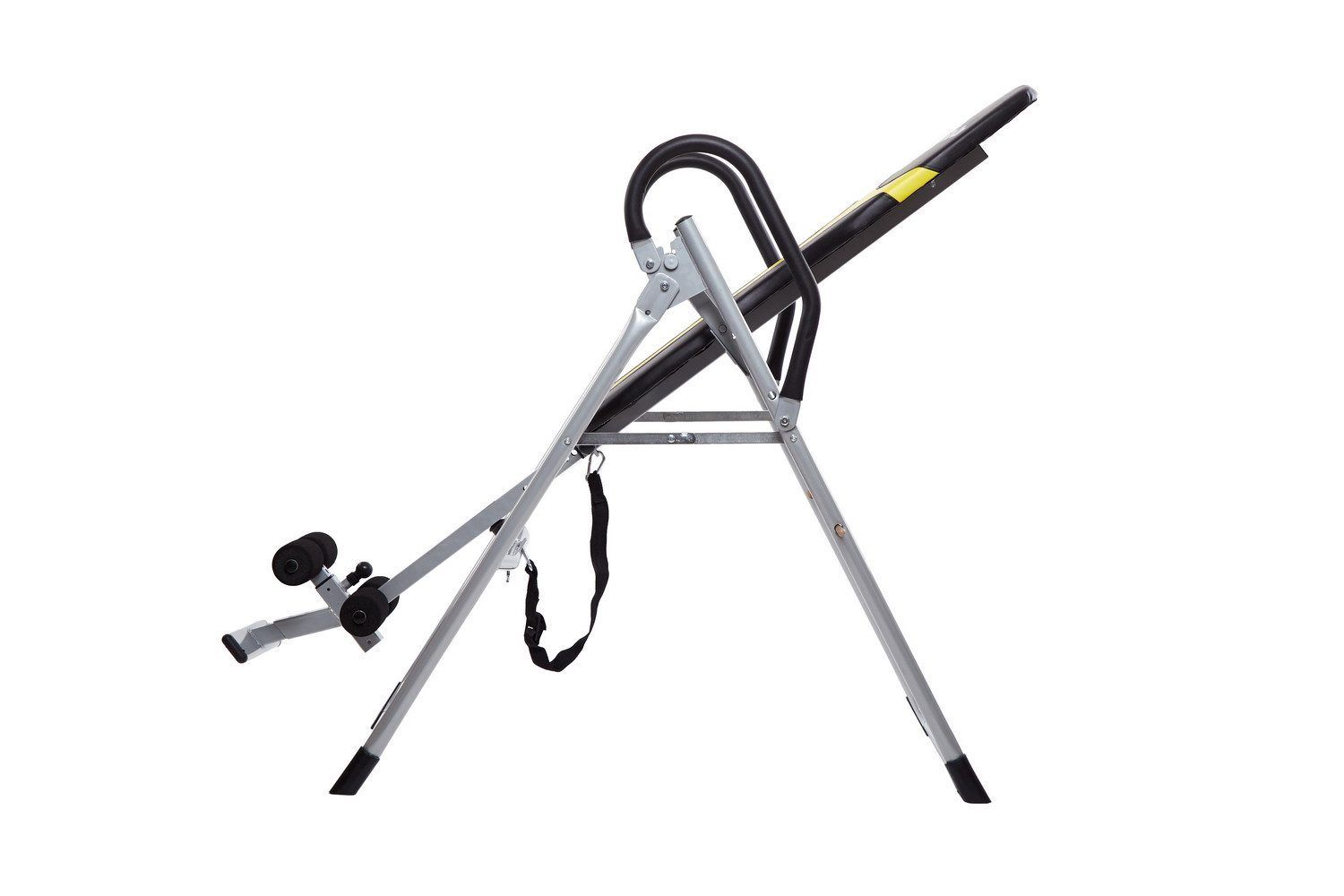 Дія тренажера полягає у підвішуванні тіла вниз головою. За допомогою рекомендованого ортопедами положення ви полегшите навантаження на хребет, міжхребцеві диски, розслабте м'язи спини та покращіть кровообіг. Крім того, інверсійний стіл допоможе вам зменшити напругу, спричинену стресом.